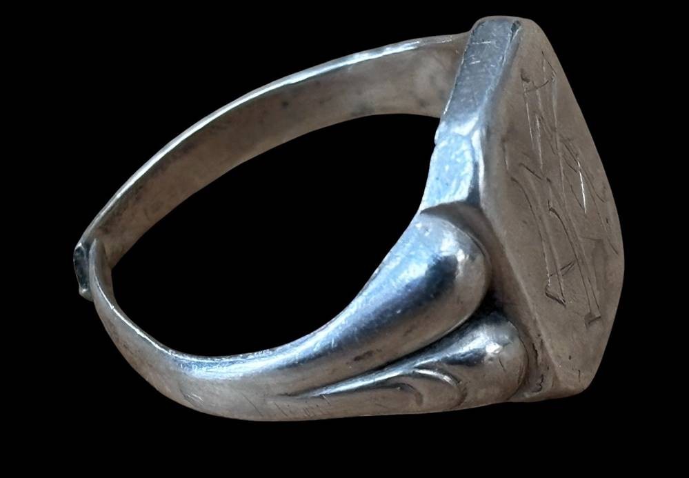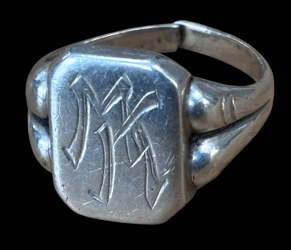 Silberring -835-, Gravurplatte "MK". Schiene offen, 3,6 gr. [1]