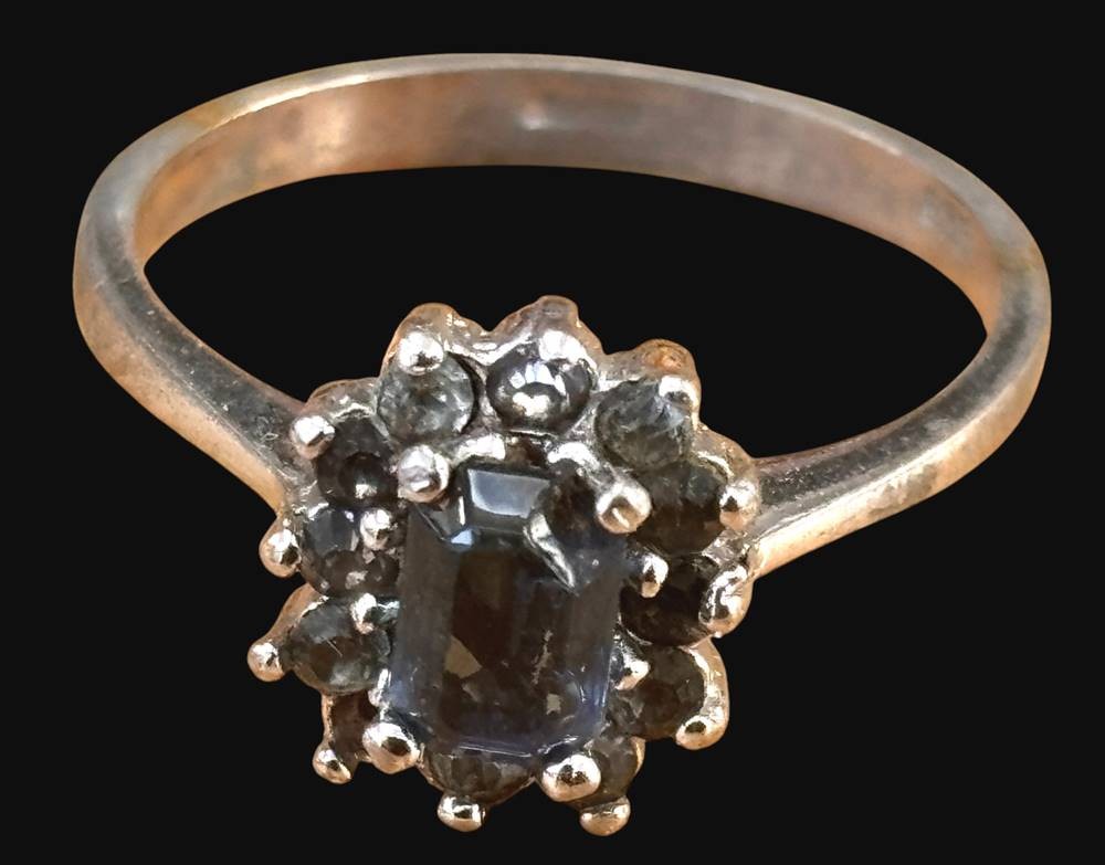 Silberring-835- mit blauen Centerstein, umringt von klaren Steinen, RG 55, 2,8 gr [1]