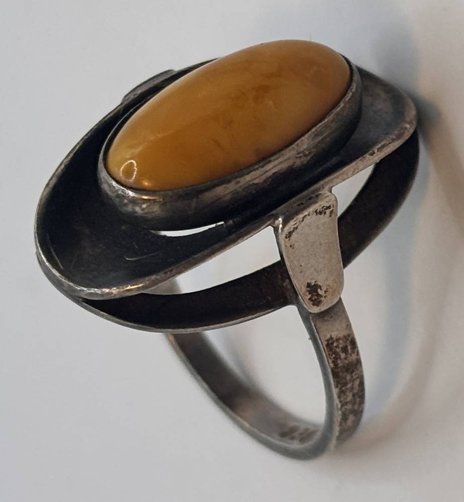 Silberring-835- mit gelben Bernstein, RG 52, 6,4 gr. [1]