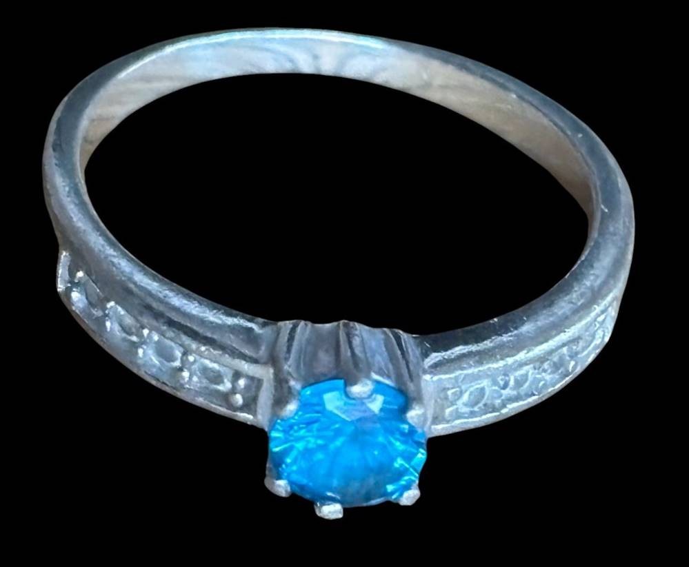 Silberring-925-, blauer Centerstein, beidseitig klare Steine, RG 54, 2,5 gr. [1]