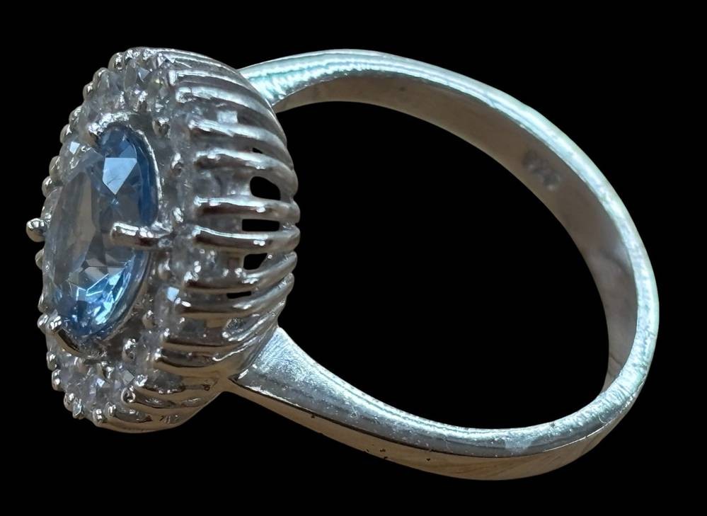 Silberring-925-, blauer Centerstein, umringt von klaren Steinen, RG 55, 4,2 gr [1]