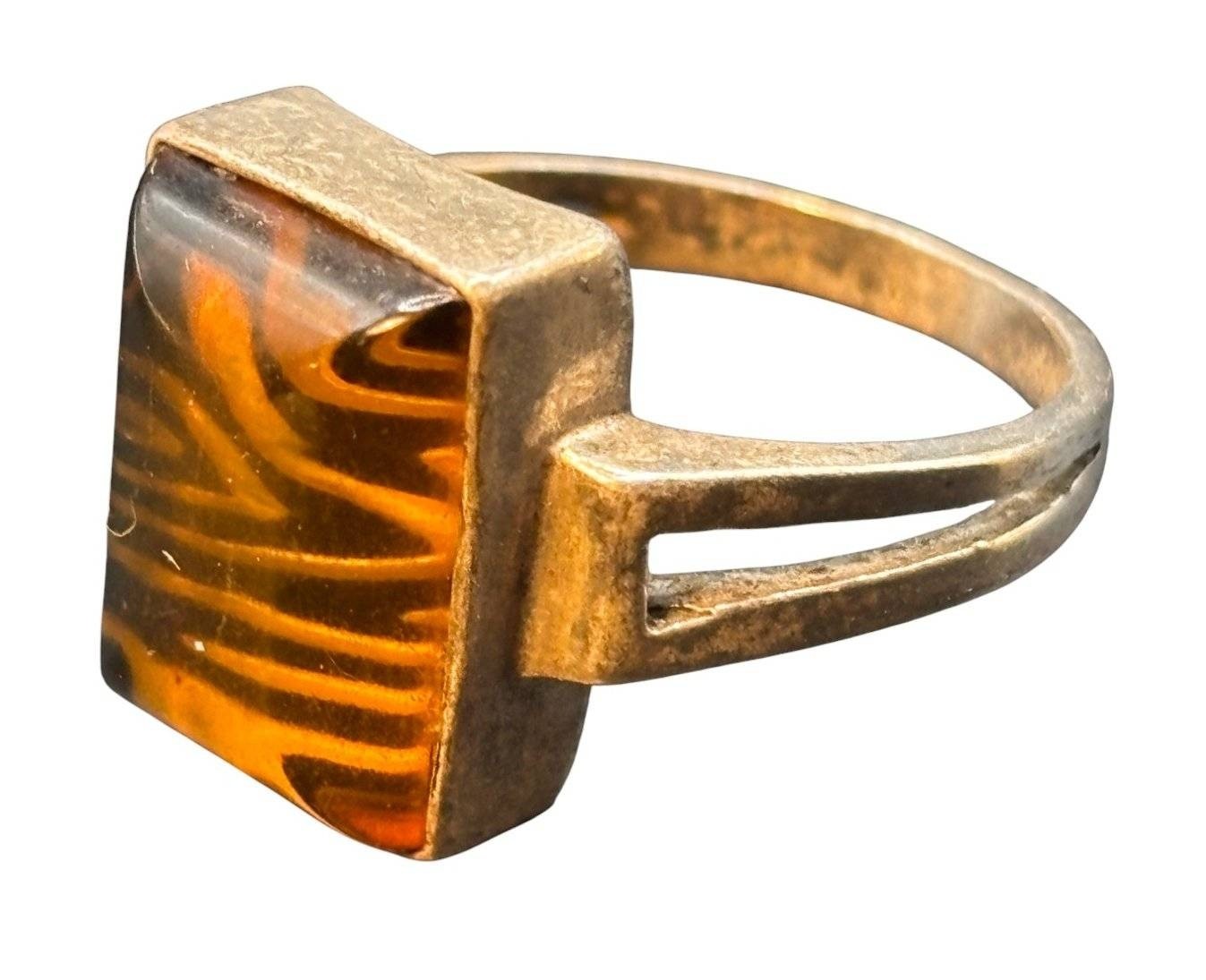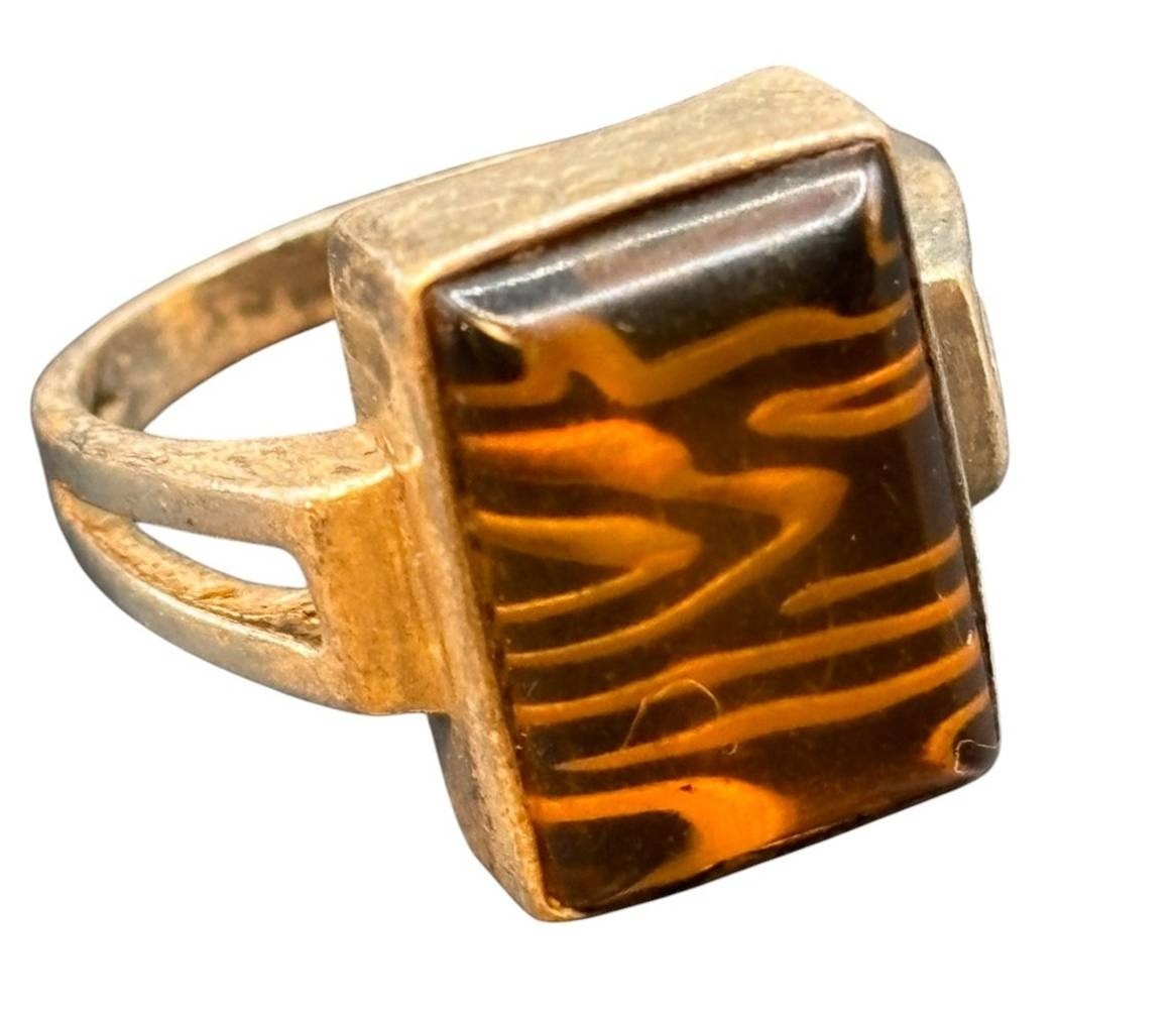 Silberring-925-, brauner, gestreifter Stein, RG 57, 5 gr.