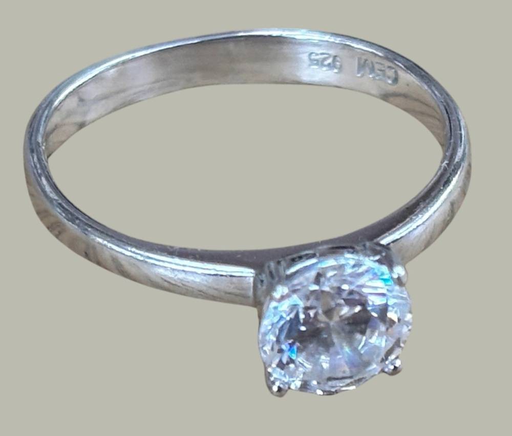 Silberring-925- "CEM" mit klaren Stein, RG 50, 2,6 gr [1]