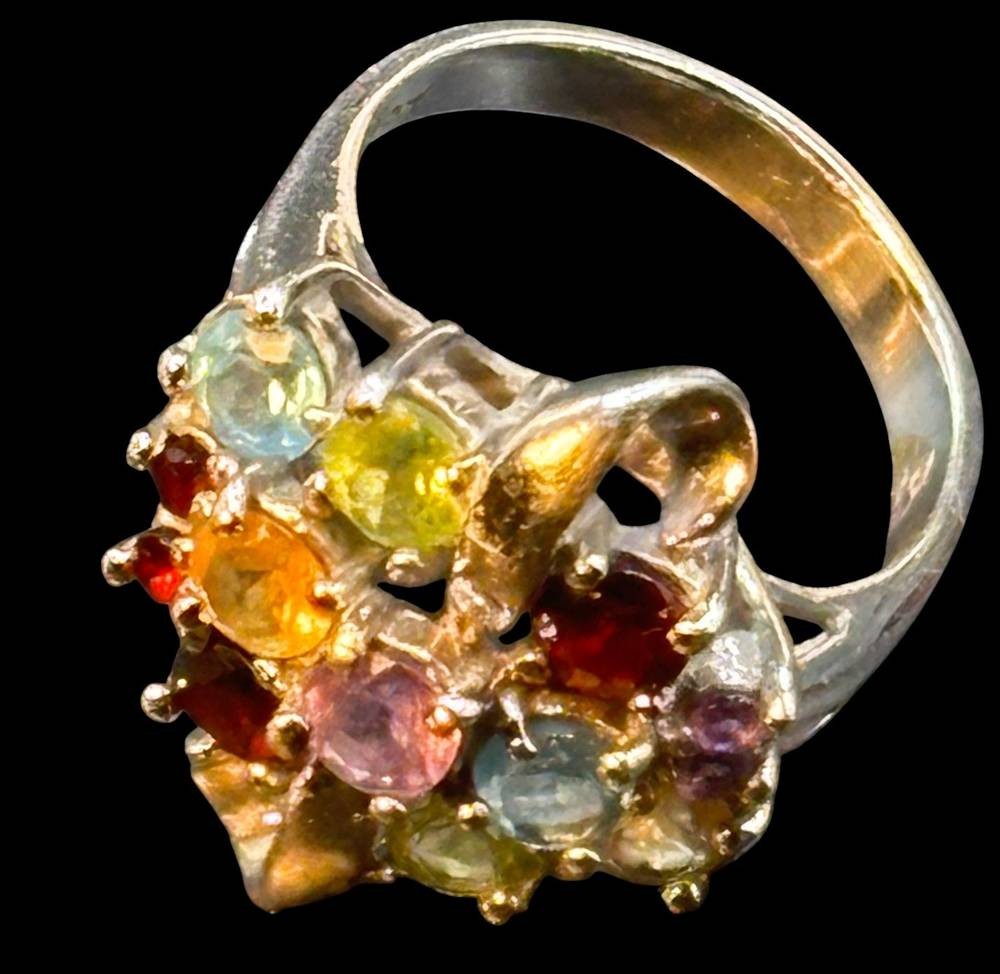 Silberring-925- mit 11 Farbsteinen, RG 53, 5,4 gr. [1]