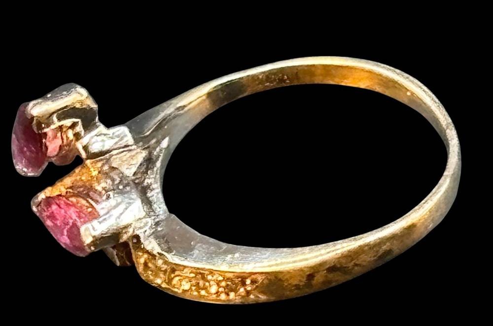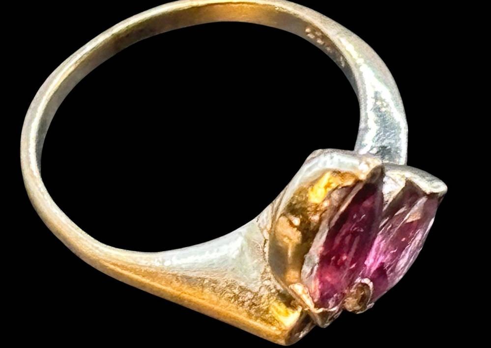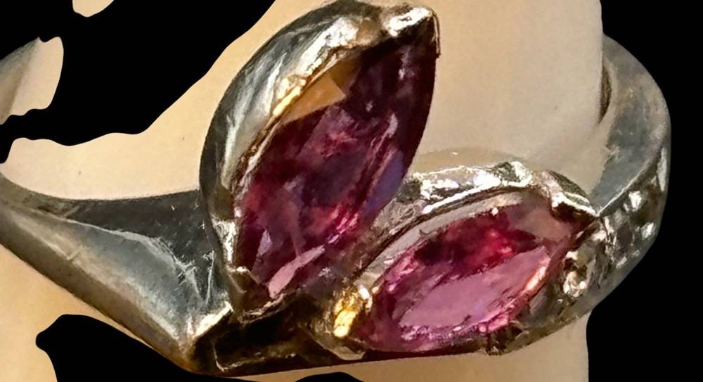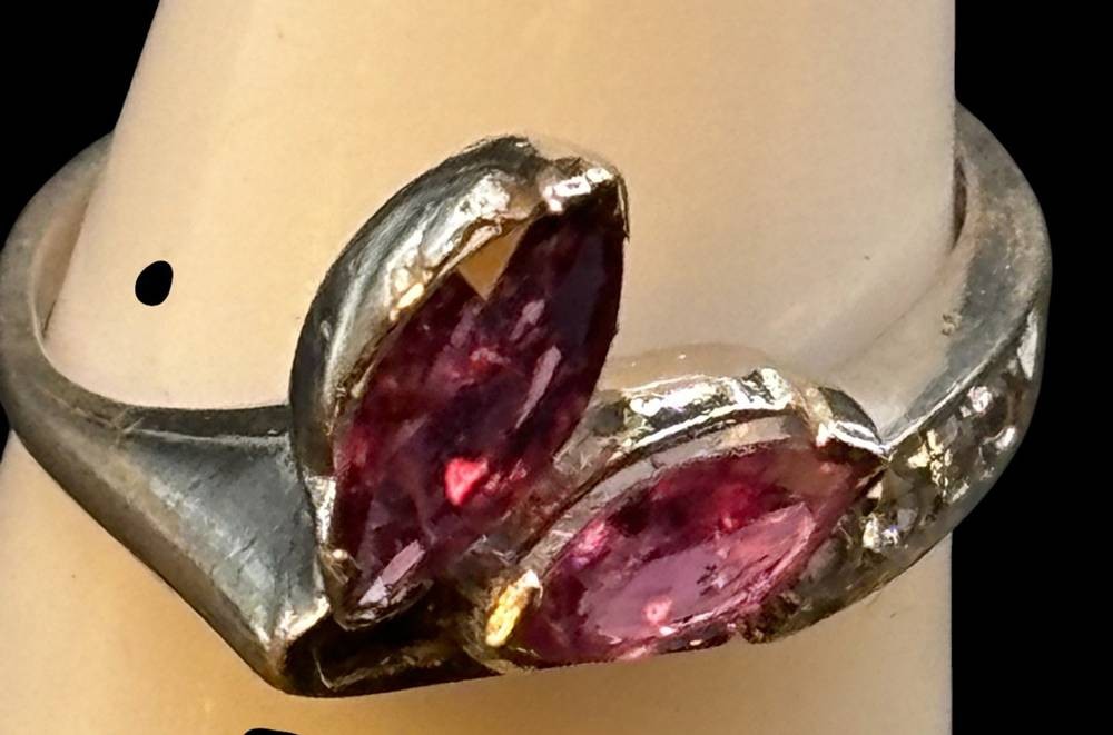 Silberring-925- mit 2 altrosa Steinen und klare kl. Steine, RG 52, 3,6 gr. [1]