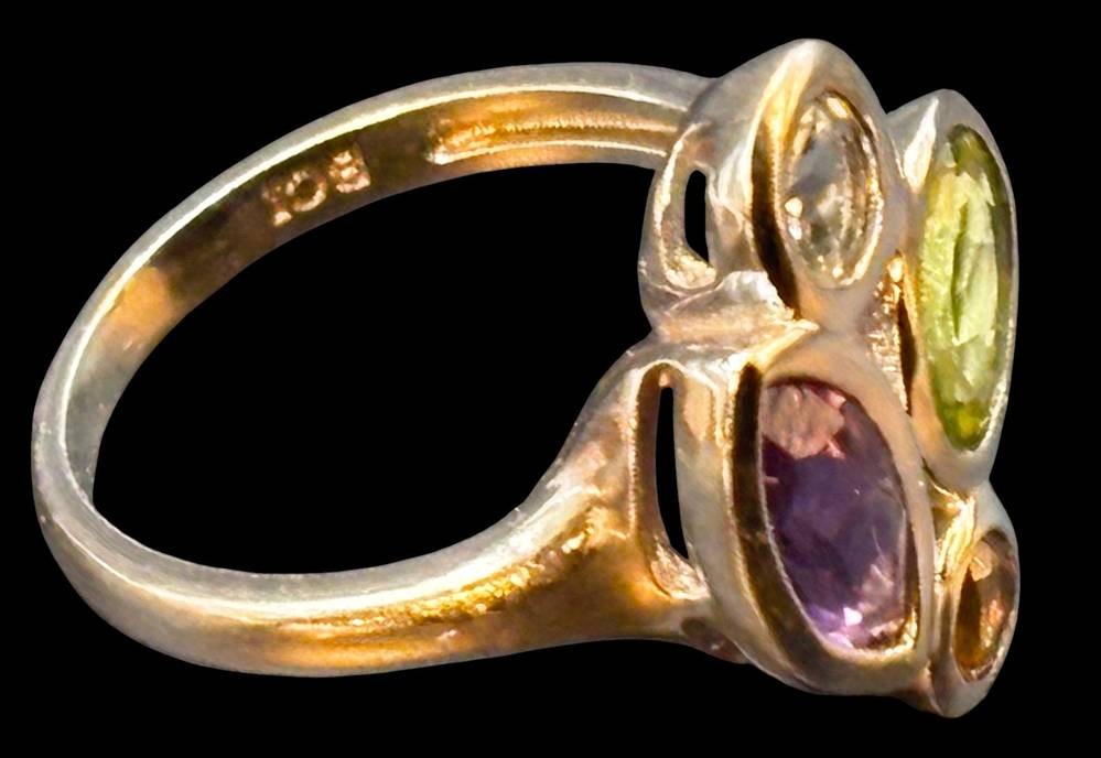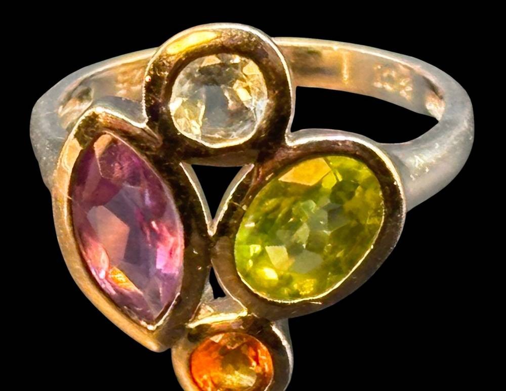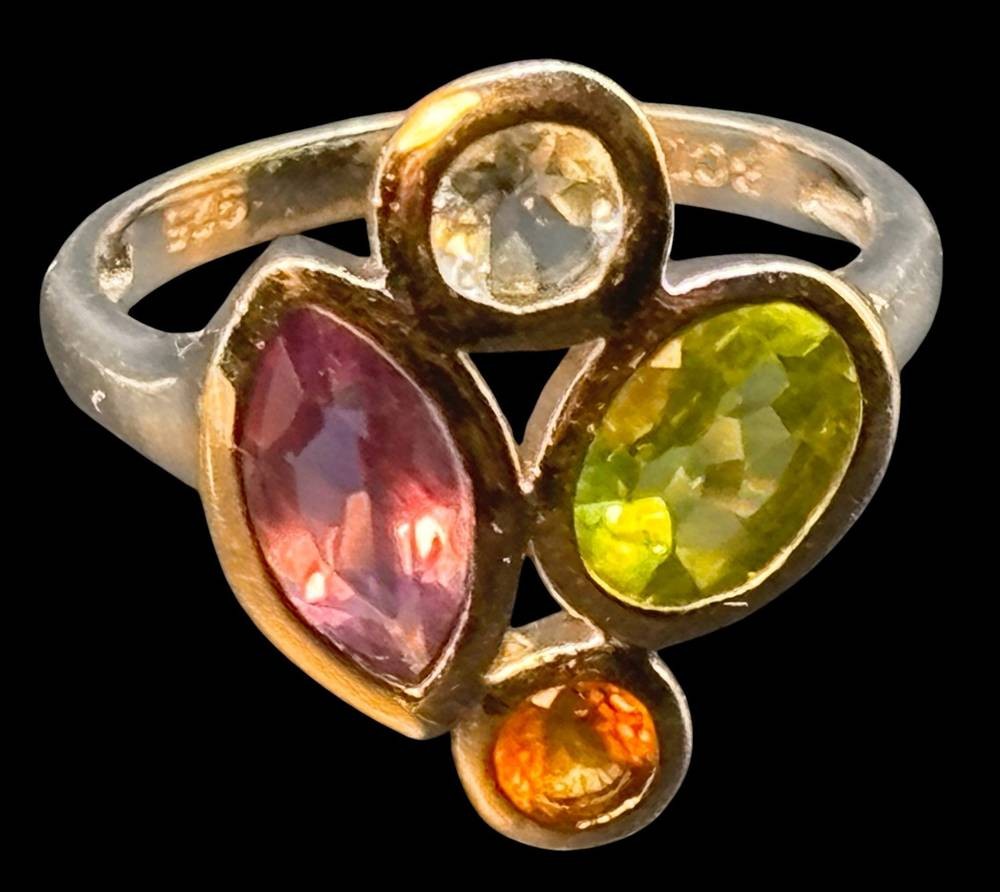 Silberring-925- mit 4 Farbsteinen "BCI", RG 60, 5,1 gr