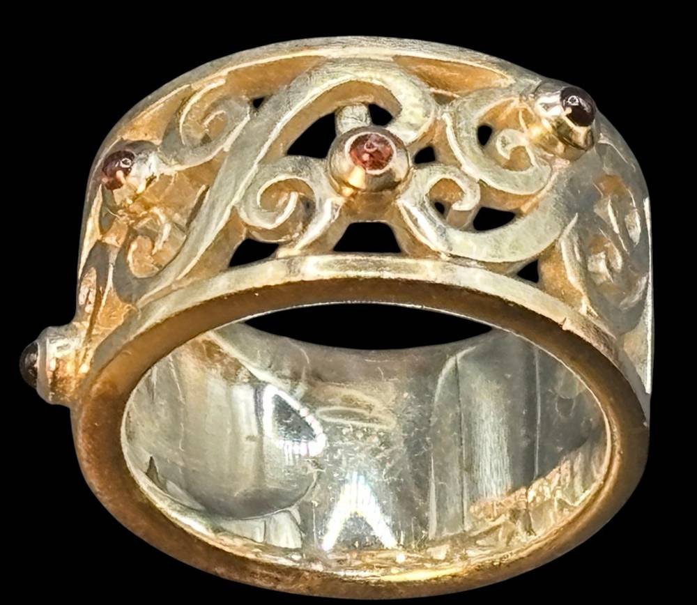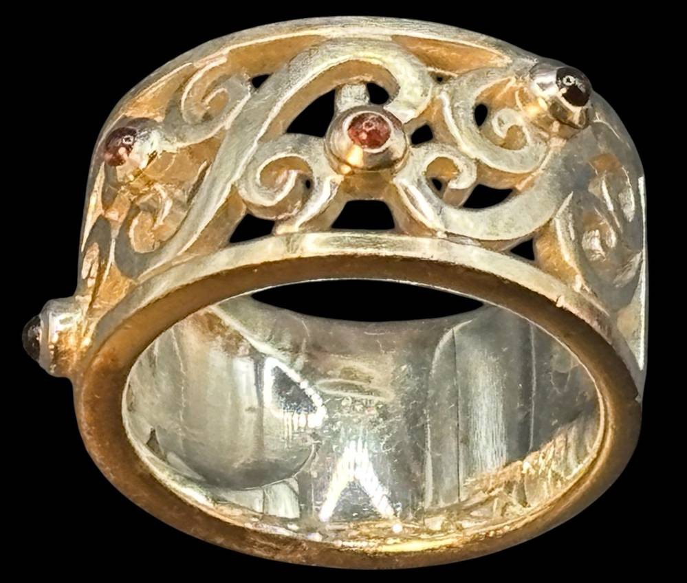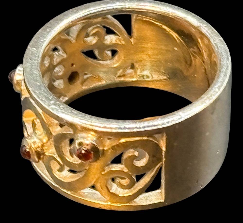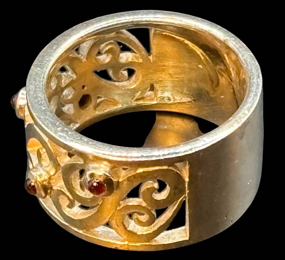 Silberring-925- mit 4 roten Steinen, gemarkt "bastian", RG 60, 11,3 gr. [1]