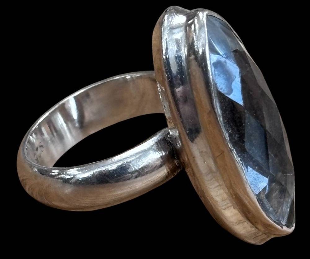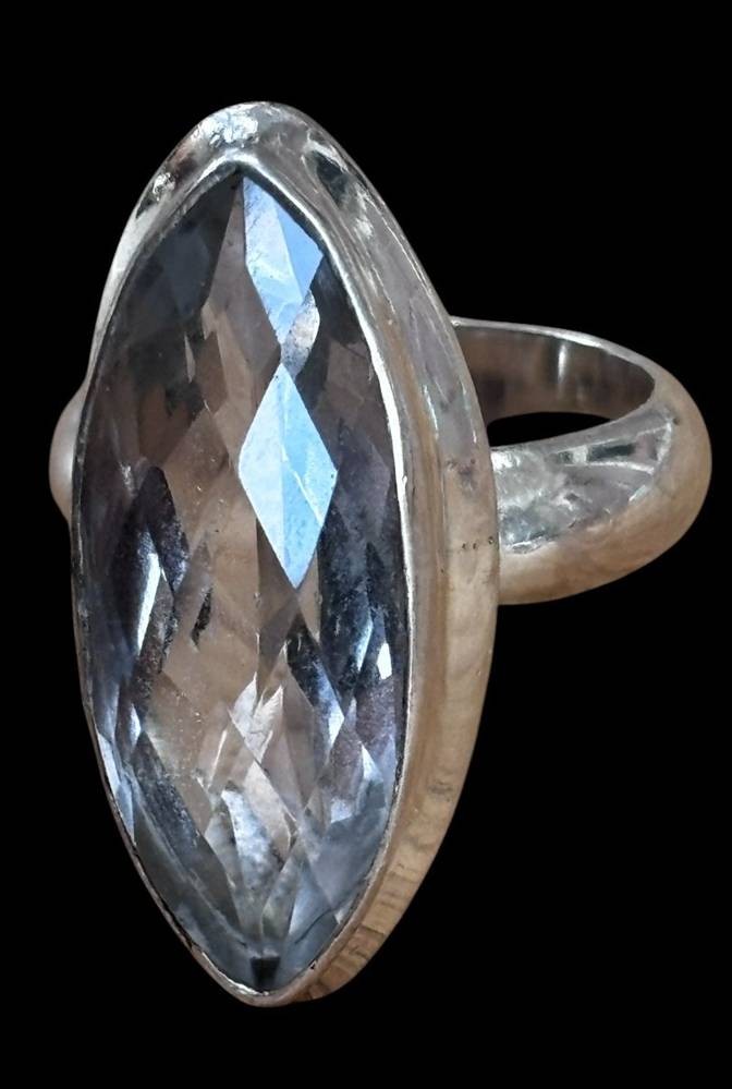 Silberring-925- mit Bergkristall-Navette, facettiert, , RG 52, 9,7 gr [1]
