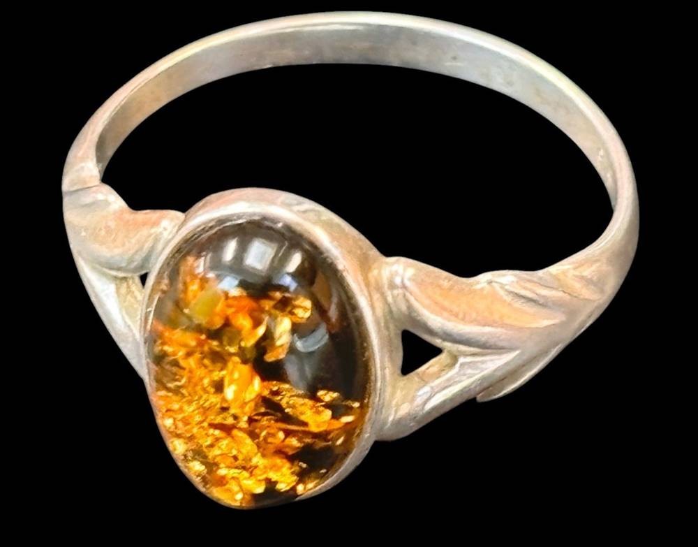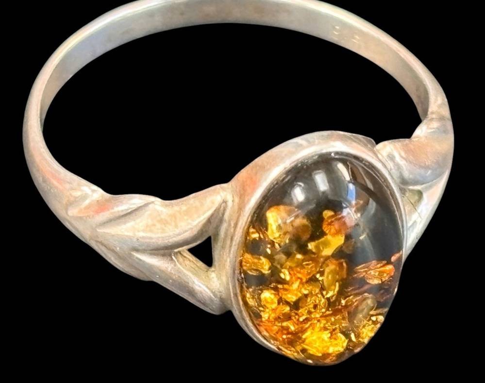Silberring-925- mit Bernstein, RG 60, 2,6 gr [1]