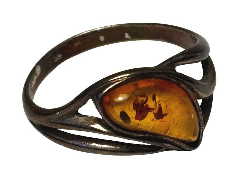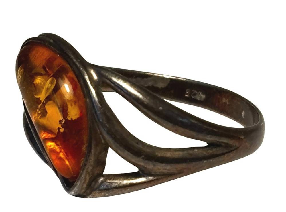 Silberring-925- mit braunen Bernstein, Einschlüsse, RG 60, 2,7 gr [1]