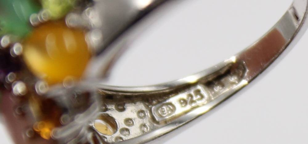 Silberring-925- mit div. Farbsteinen, RG 57, 4,1 gr. [1]