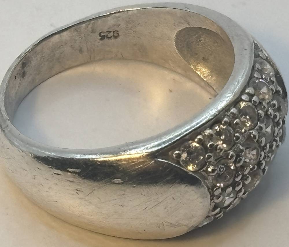 Silberring-925- mit klaren Steinen, Tragespuren, RG 60, 7,4 gr. [1]