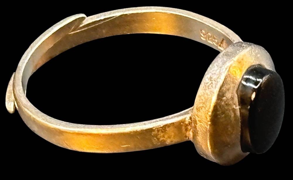 Silberring -925- "Teka" mit schwarzen Lagenstein, Schiene offen, 3,1 gr