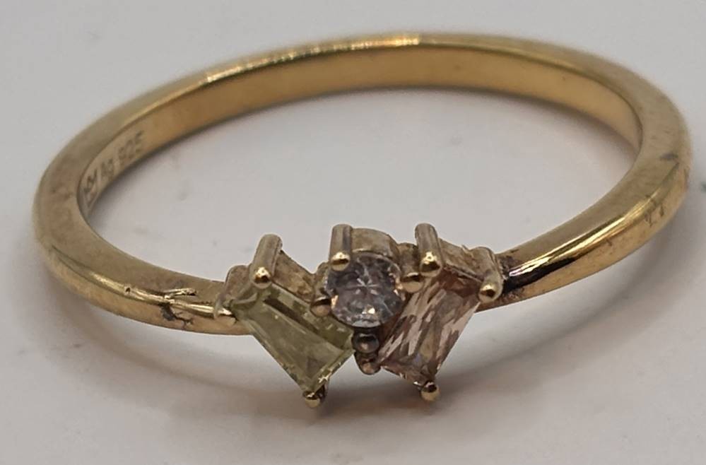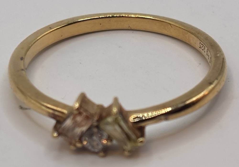 Silberring-925-, vergoldet, klare und gelb-braune Steine, RG 60, 3,2 gr. [1]