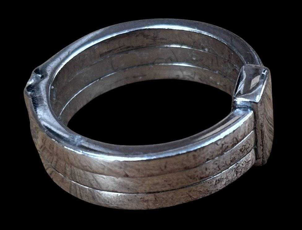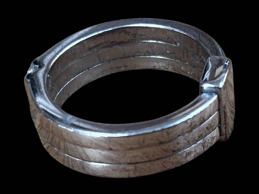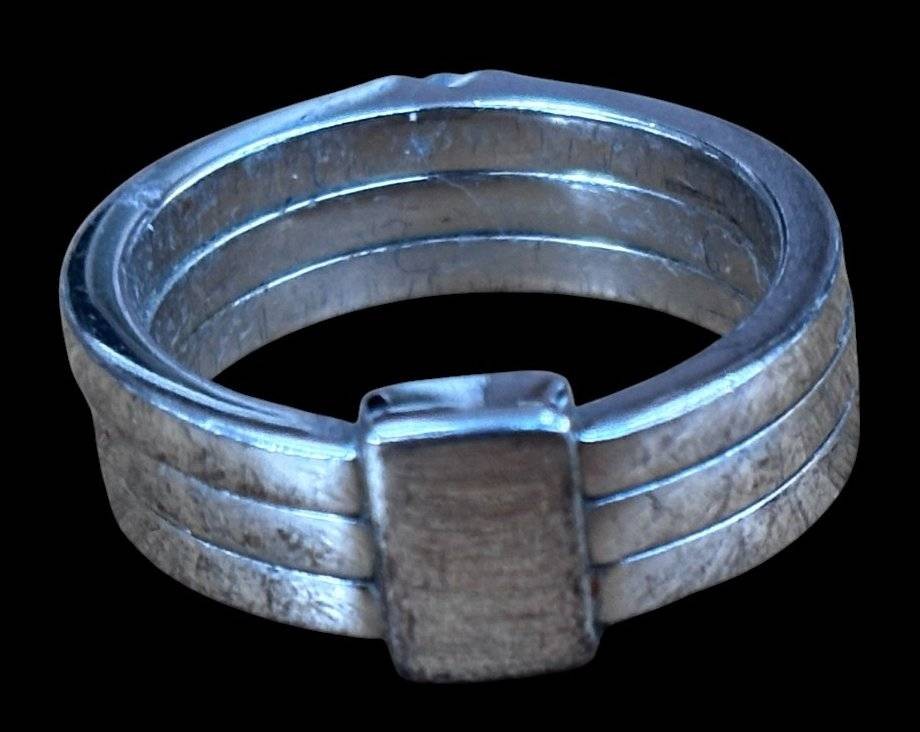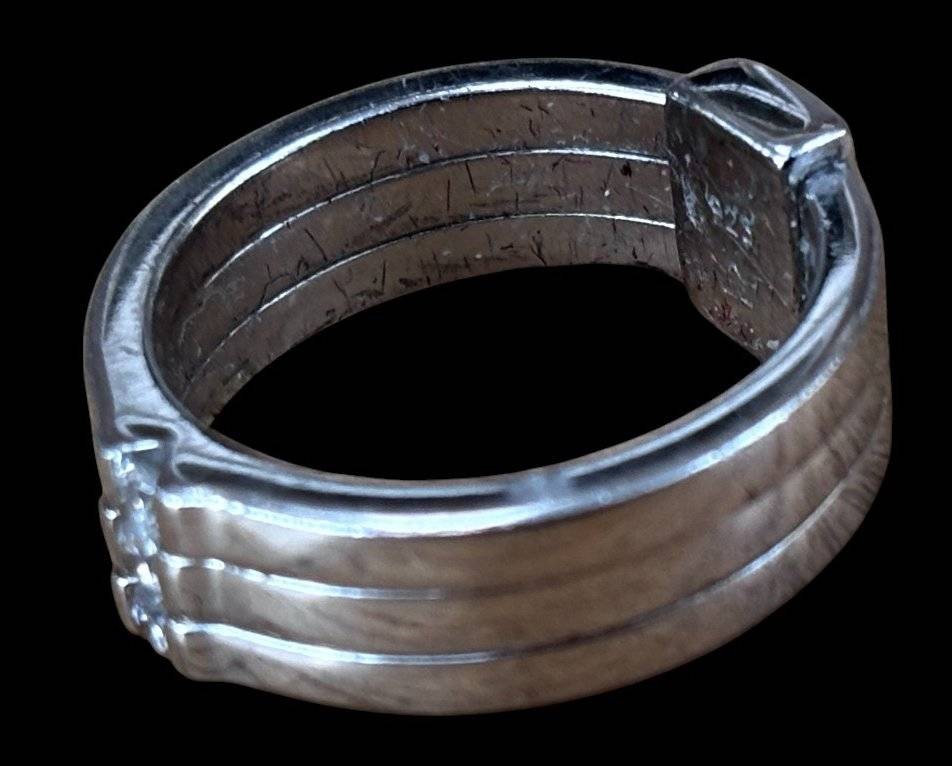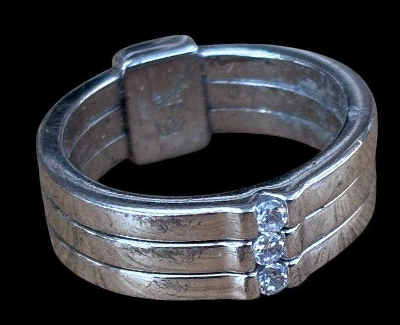 Silberring-935-, 3 klare Steine, Kronenmarke, RG 50, 6,4 gr., Tragespuren [1]