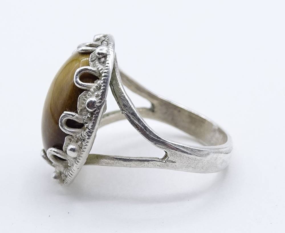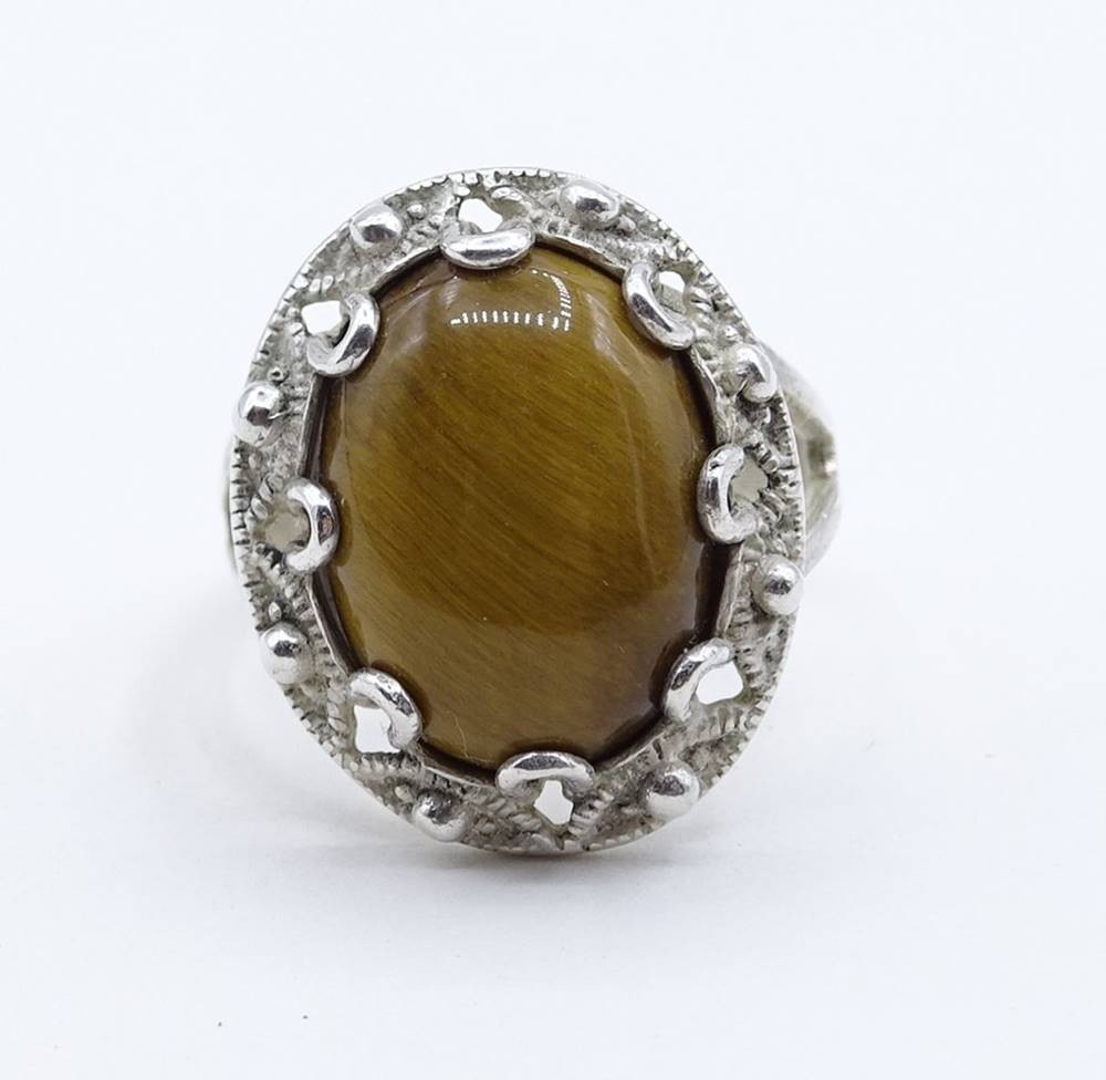 Silberring, geprüft, mit Tigeraugencabochon, RG 56, 6 gr., mit Altersspuren, reinigungsbedürftig [1]