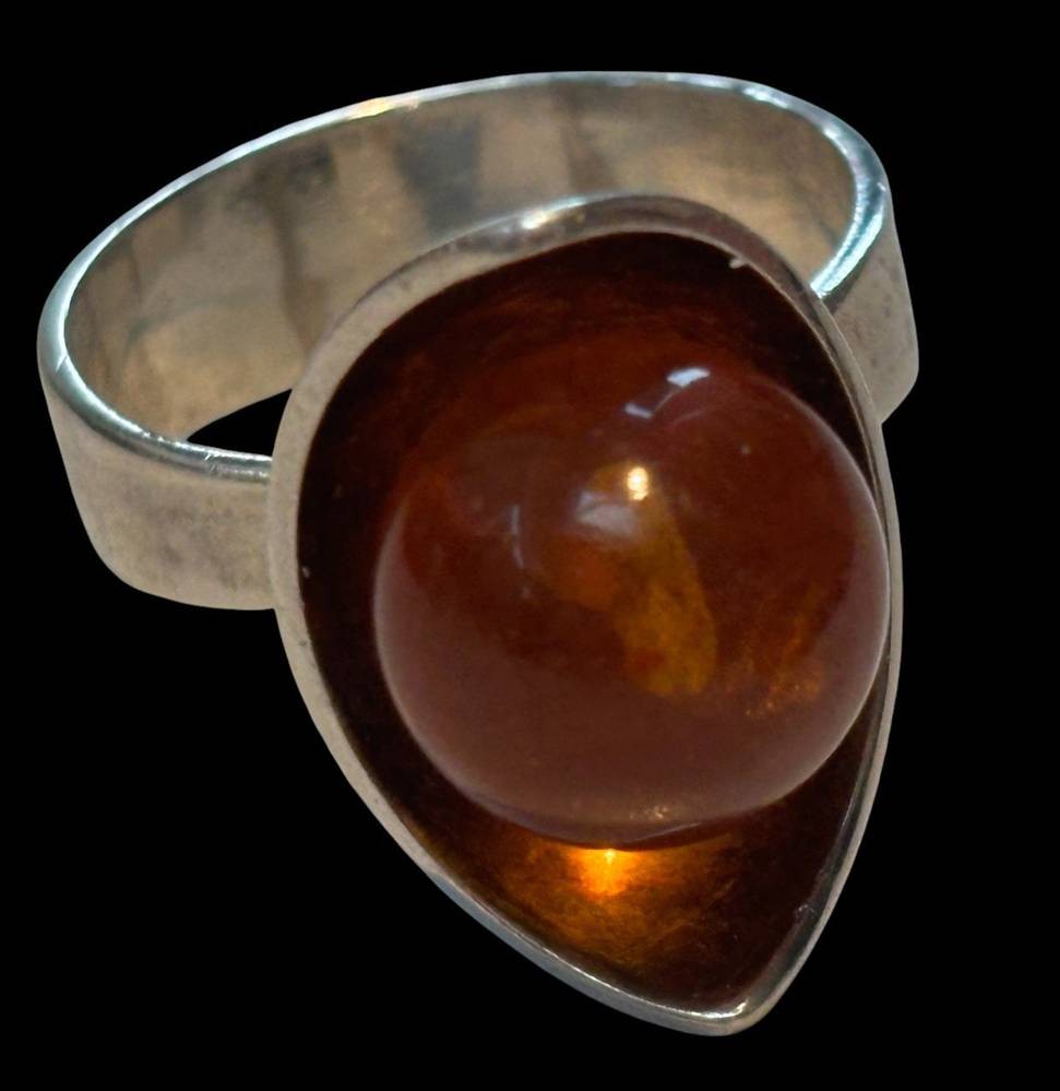 Silberring mit Bernstein-Kugel, -925- "FF", RG 61, 7,1 gr