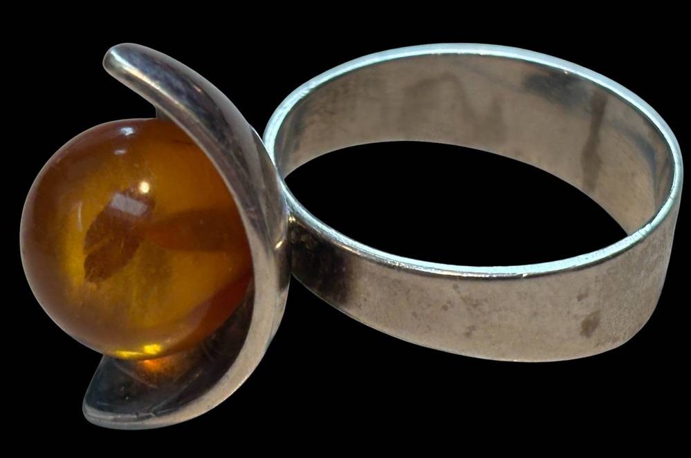 Silberring mit Bernstein-Kugel, -925- "FF", RG 61, 7,1 gr [1]