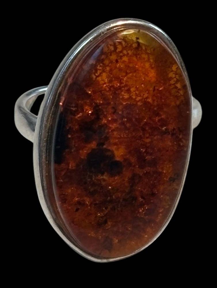 Silberring mit Bernstein, RG 63, 8,8 gr