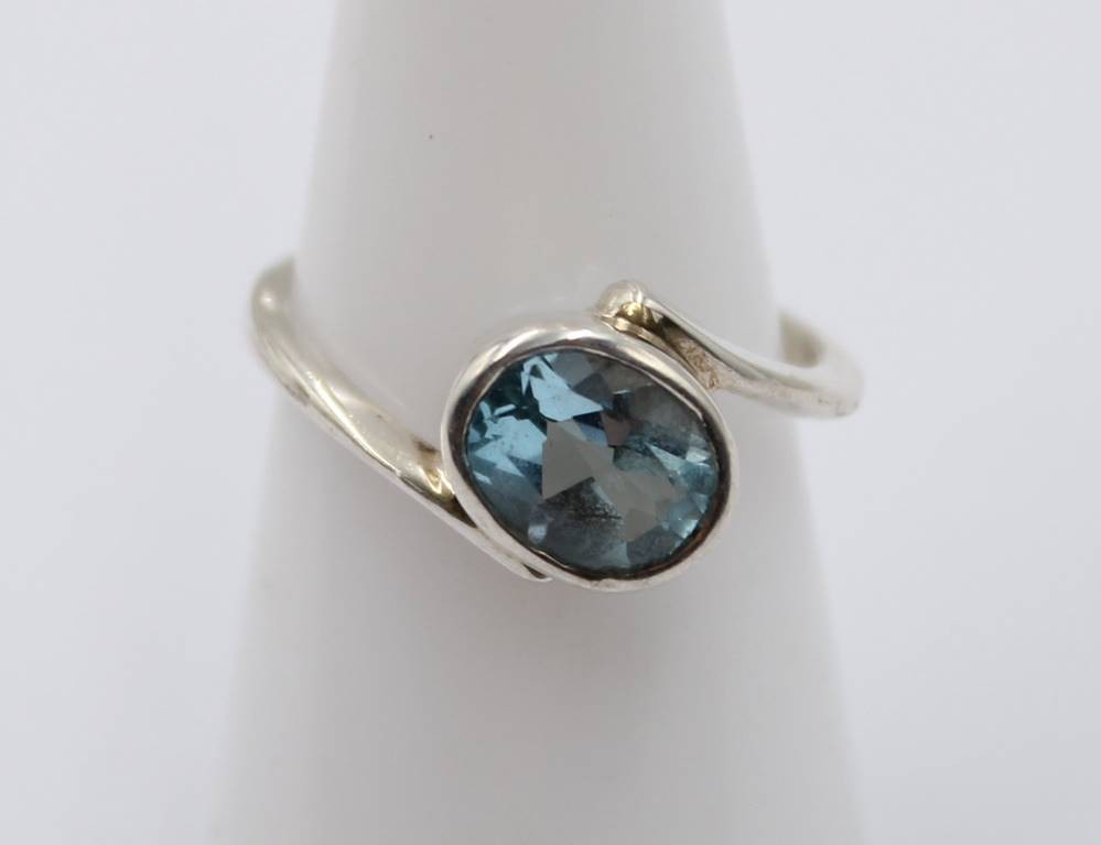 Silberring mit einem ovalen blauen Stein, Silber getestet, 3 gr., RG 55/56 [1]