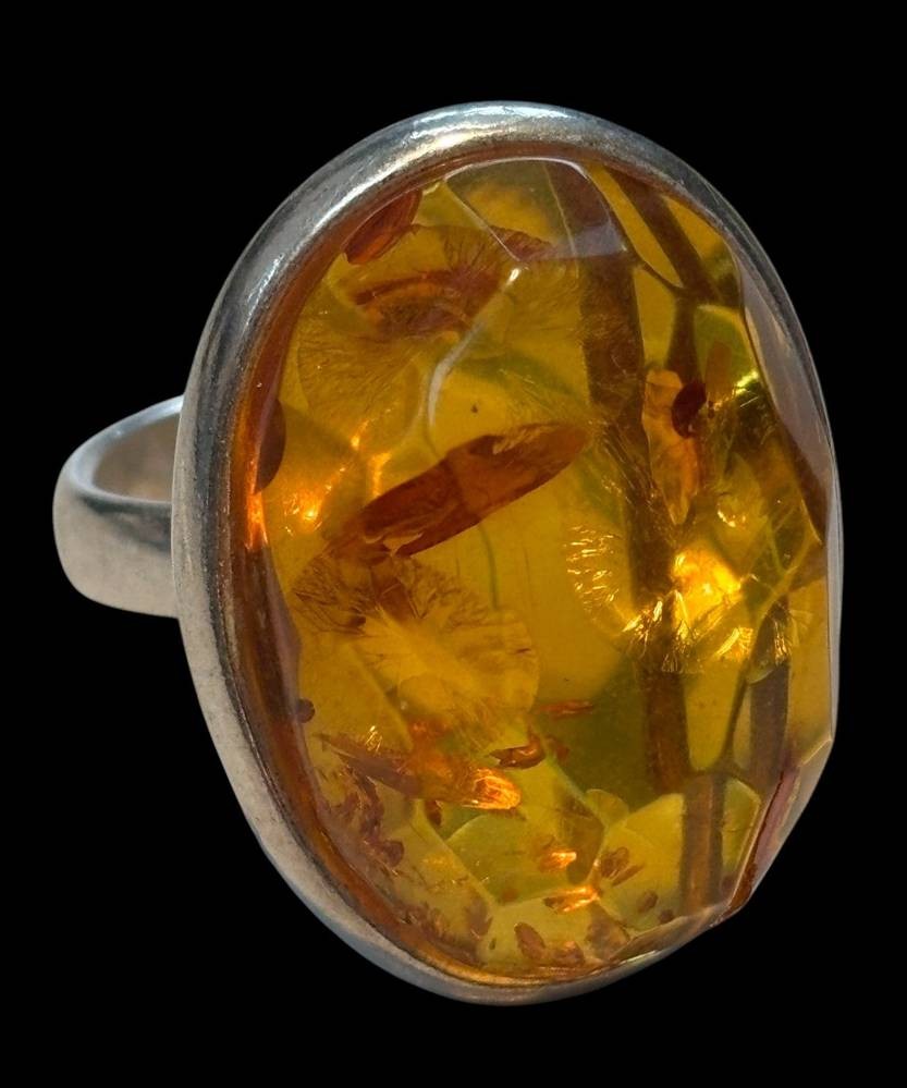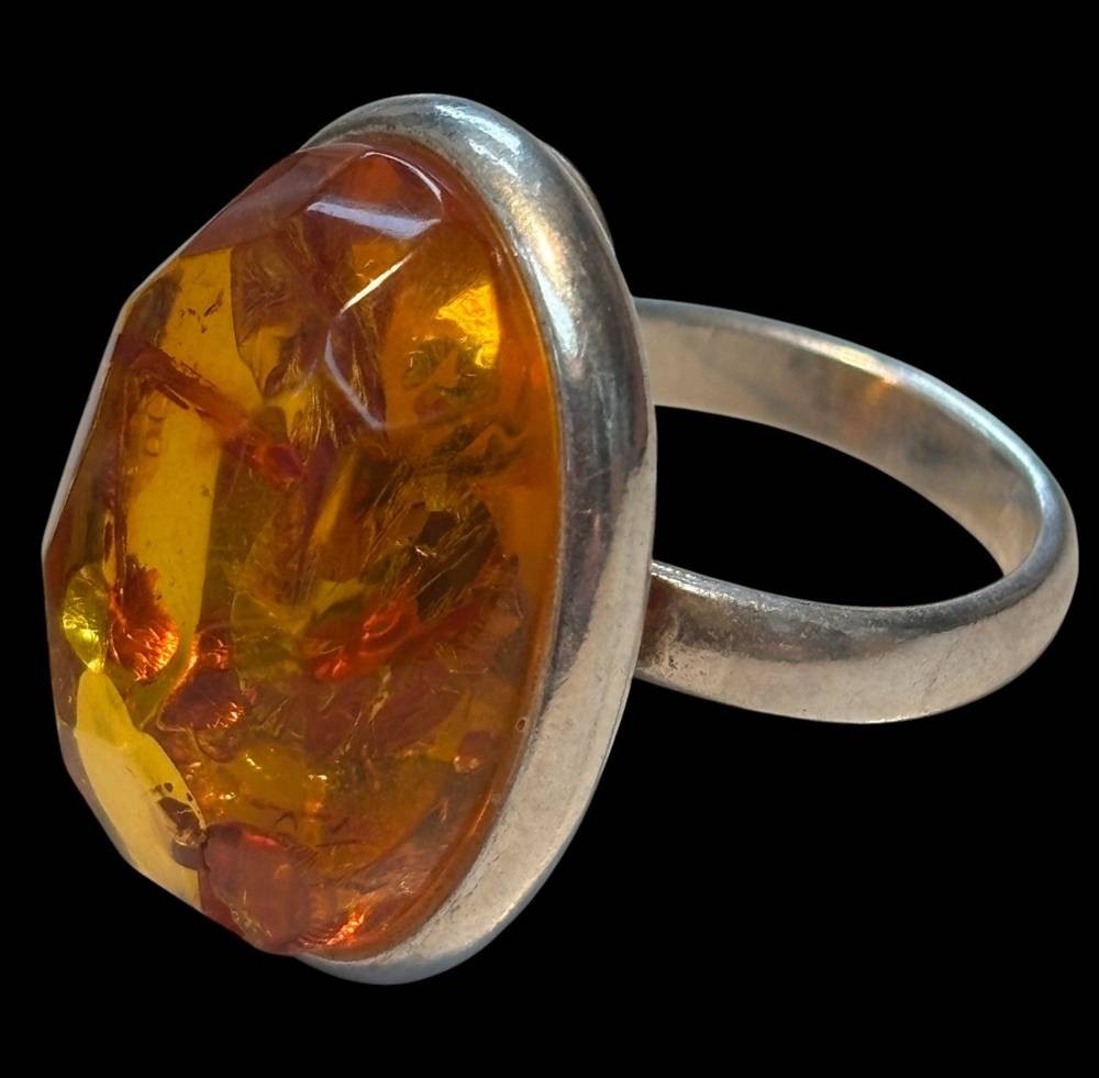 Silberring mit facett. Bernstein, RG 58, 9,4 gr [1]