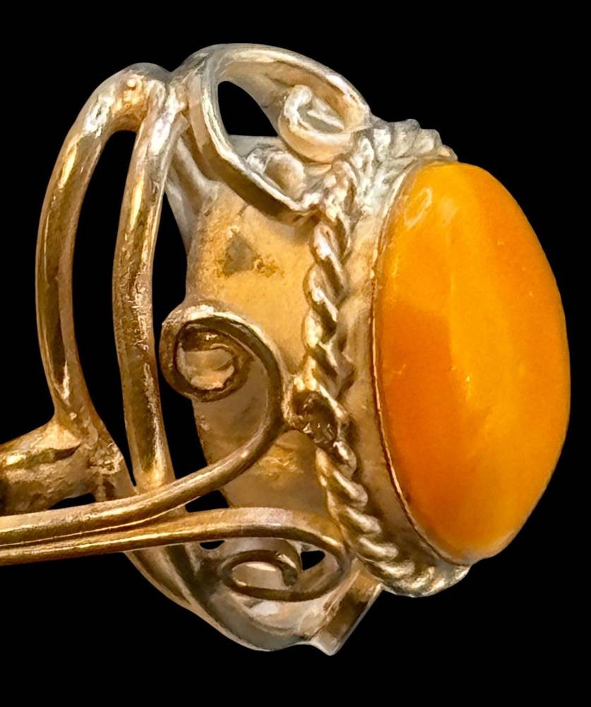 Silberring mit gelben Bernstein, undeutlich gepunzt, RG 53, 4,9 gr [1]