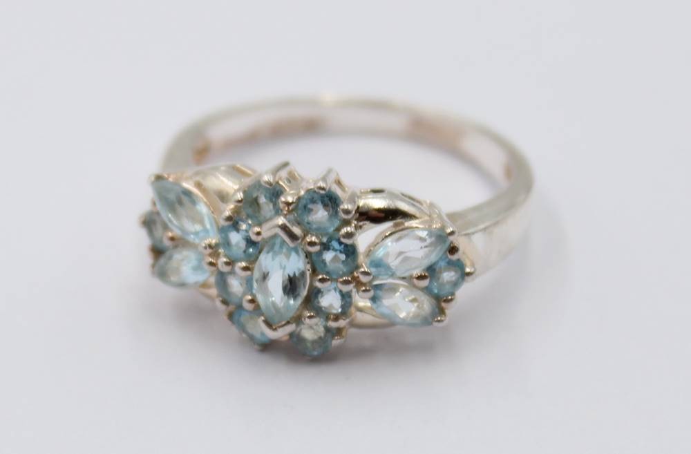 Silberring mit hellblauen Steinen, 925er Silber, 4 gr., RG 59 [1]