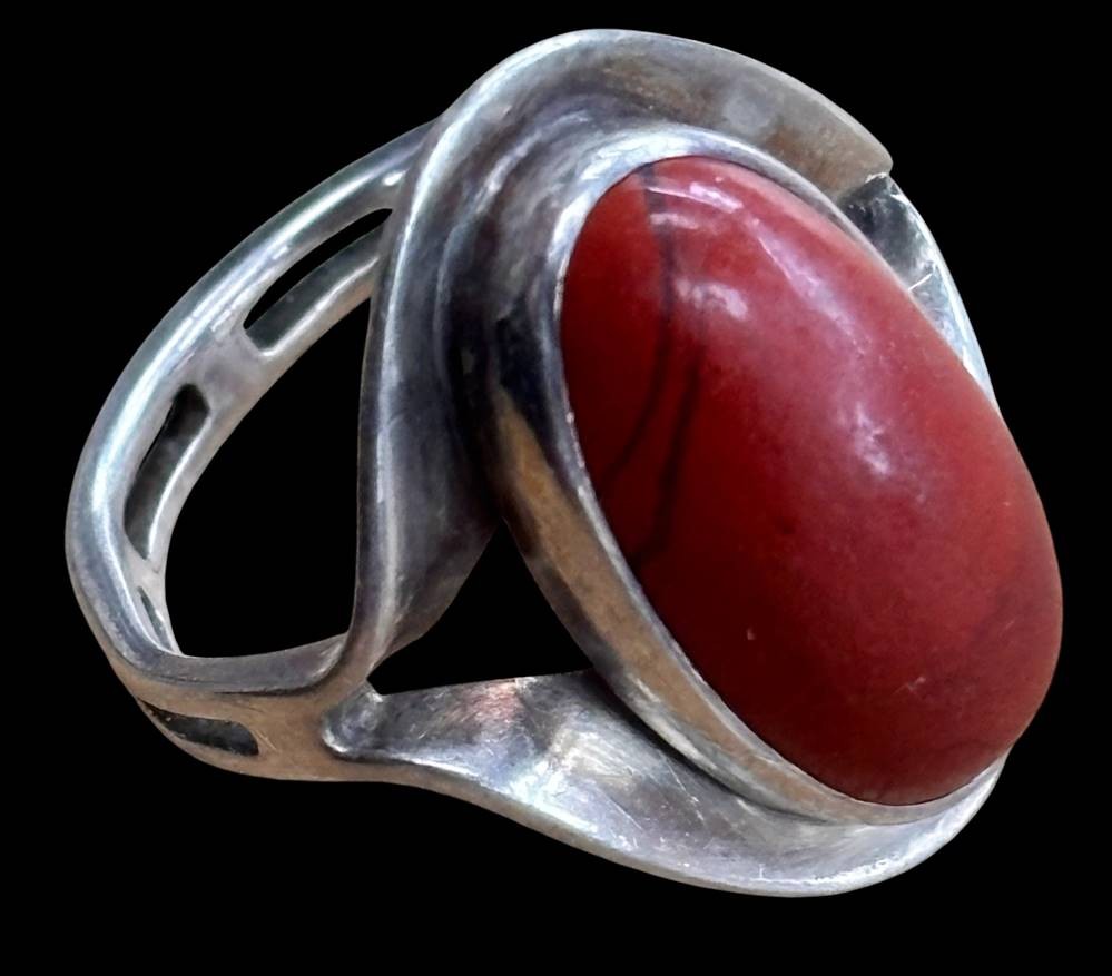 Silberring mit Koralle-Cabouchon, "Silver" gemarkt, RG 52, 7 gr [1]