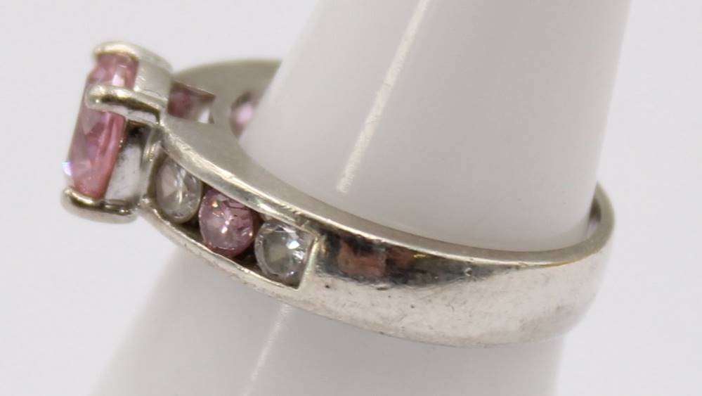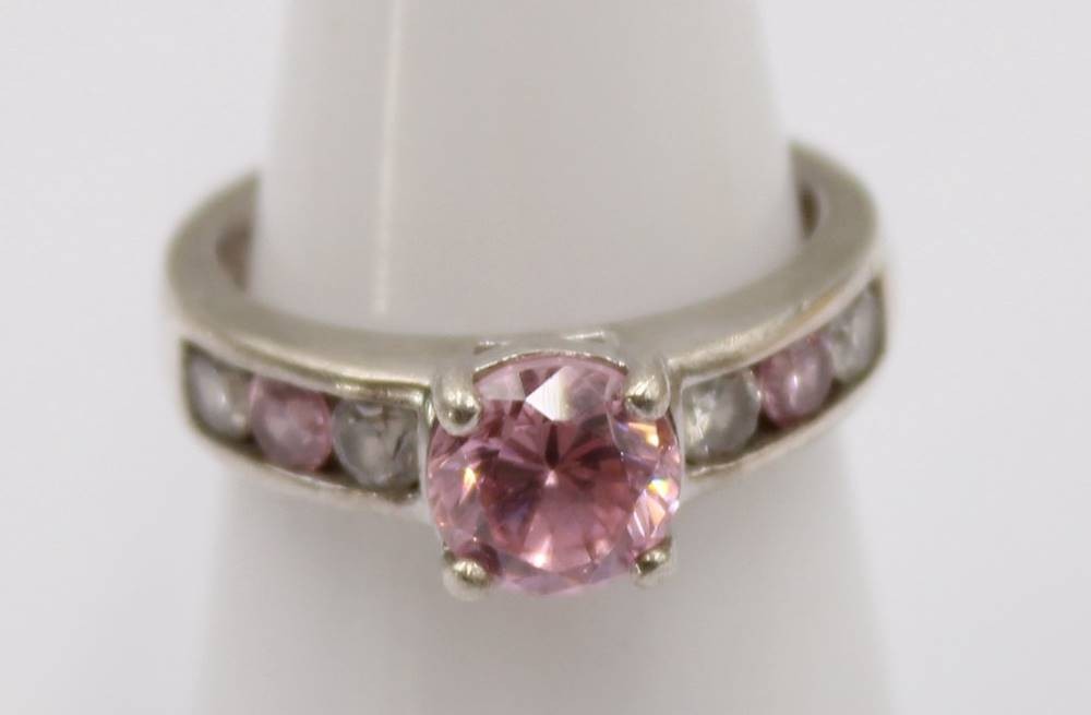Silberring mit pinken und weißen Steinen, 925er Silber, dqcz, RG. 53, 4,3 Gramm [1]
