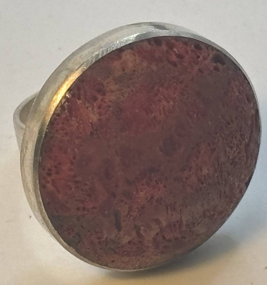 Silberring mit Schaumkoralle, Ringkopf D-ca. 2 cm, RG 53, 6,4 gr. [1]