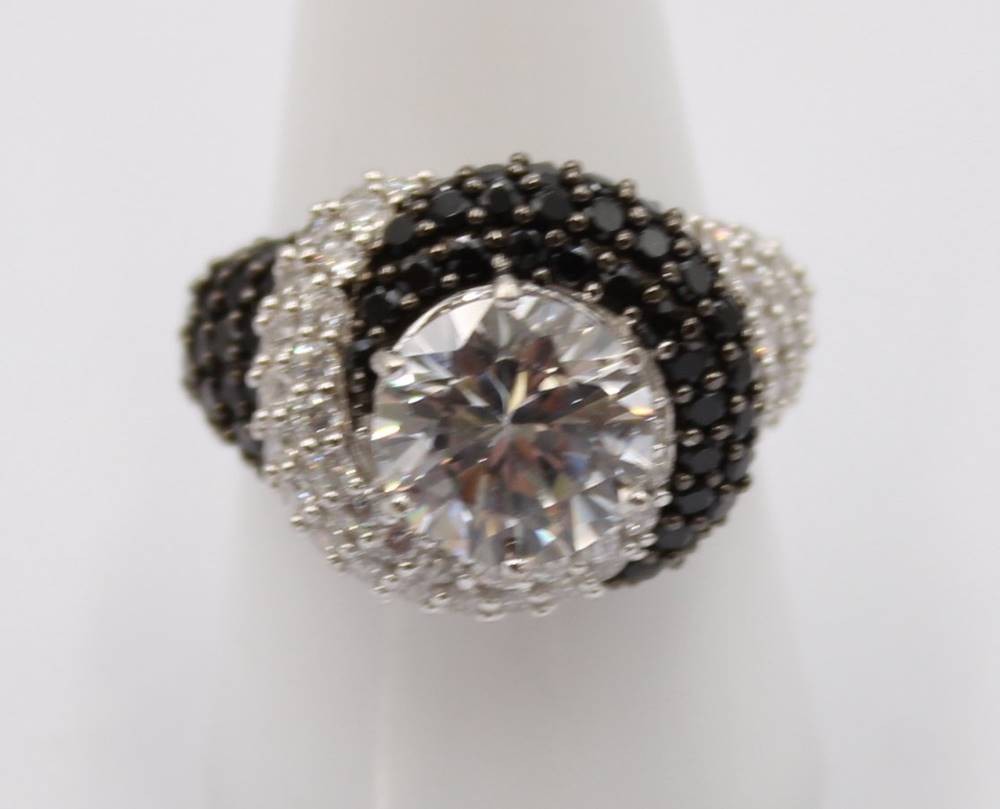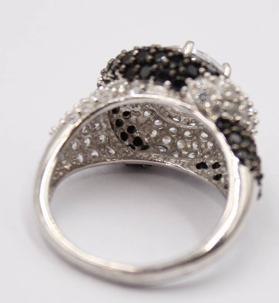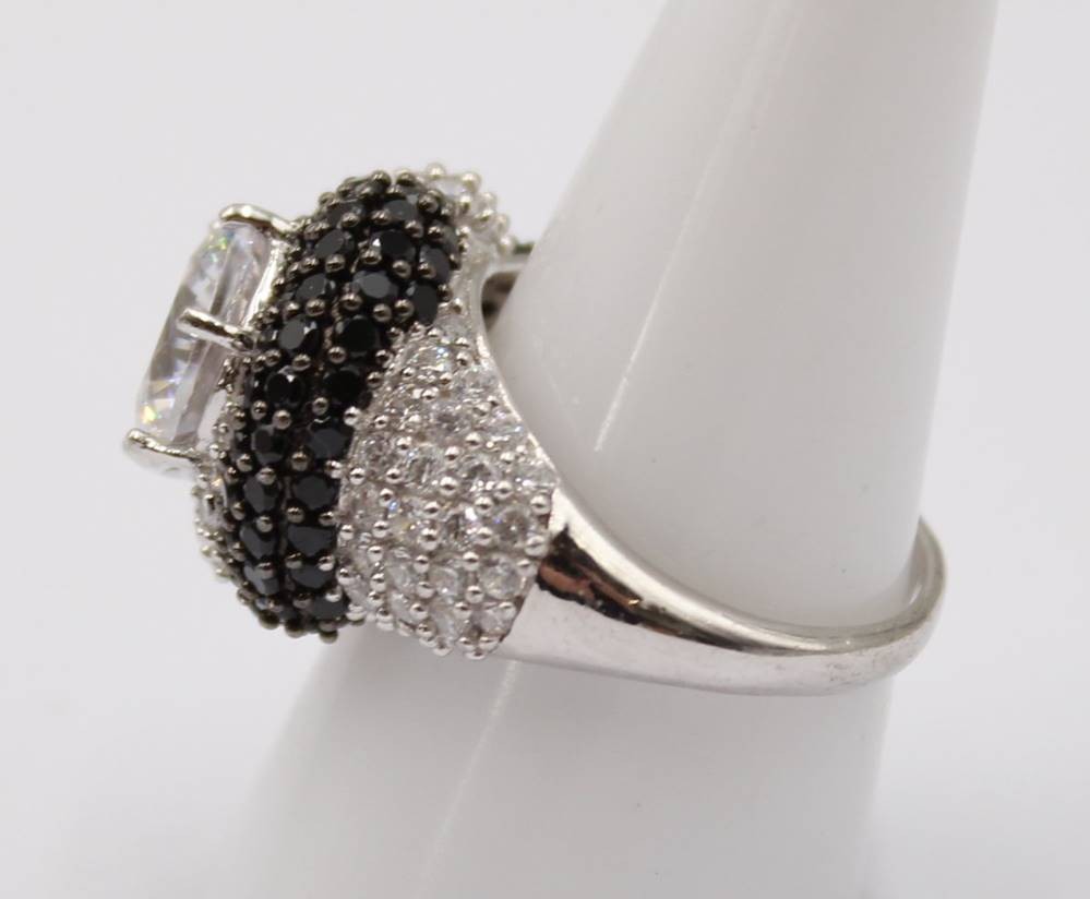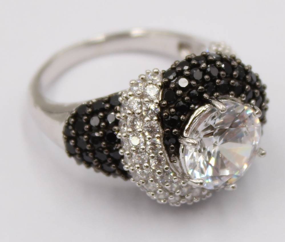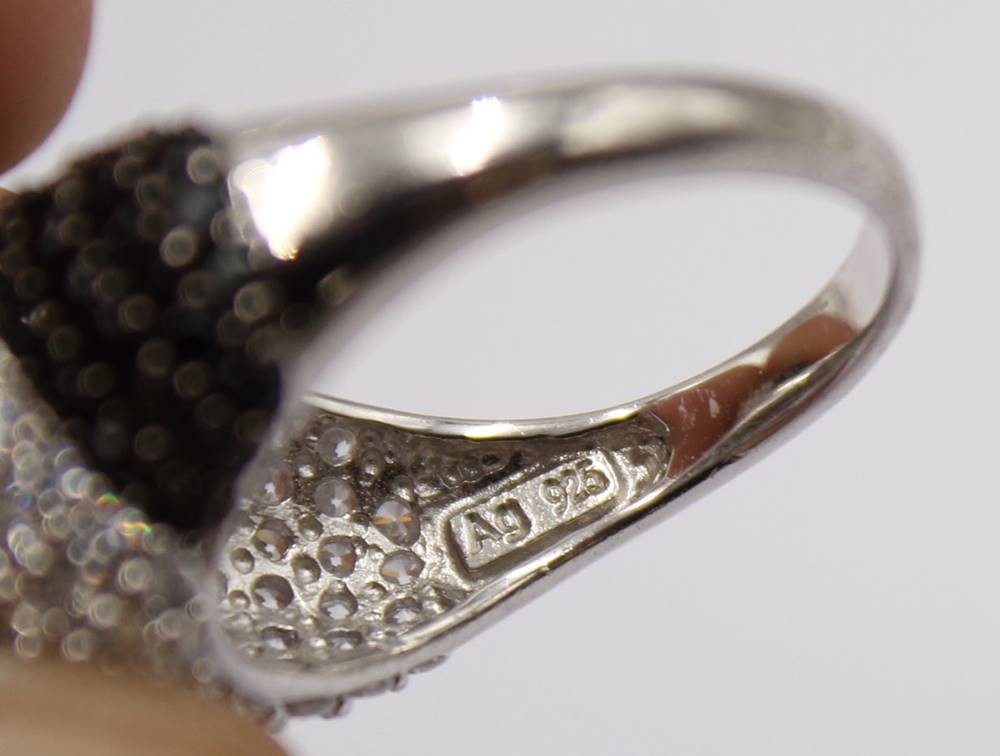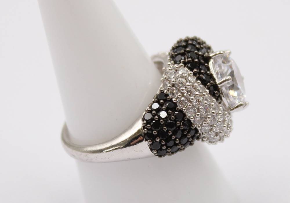 Silberring mit schwarzen und weißen Steinen, 925er Silber, guter Zustand, RG. 59, 9 Gramm [1]