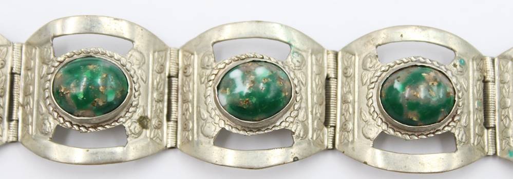 Sterling-Armband, Mexiko, 7x Cabochons, zus. 27,9gr., L-17,5cm [1]