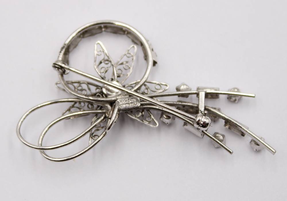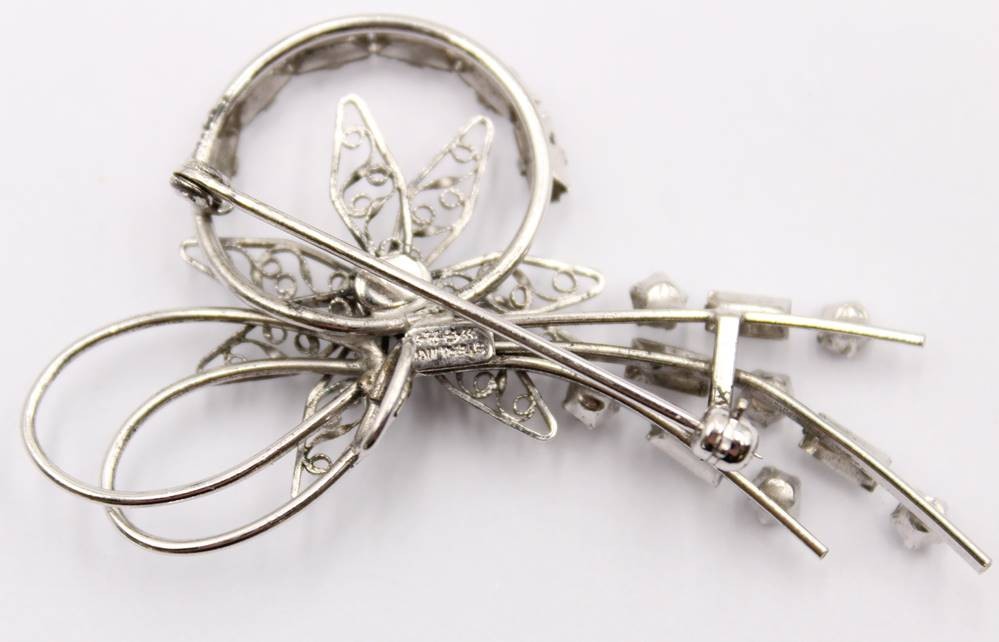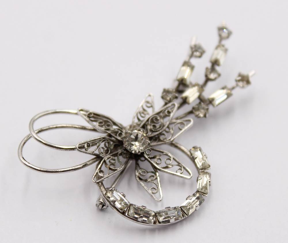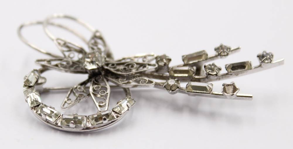 Sterling-Brosche, besetzt mit klaren Steinen, 1x Stein fehlt, L-6cm, 6,8gr. [1]