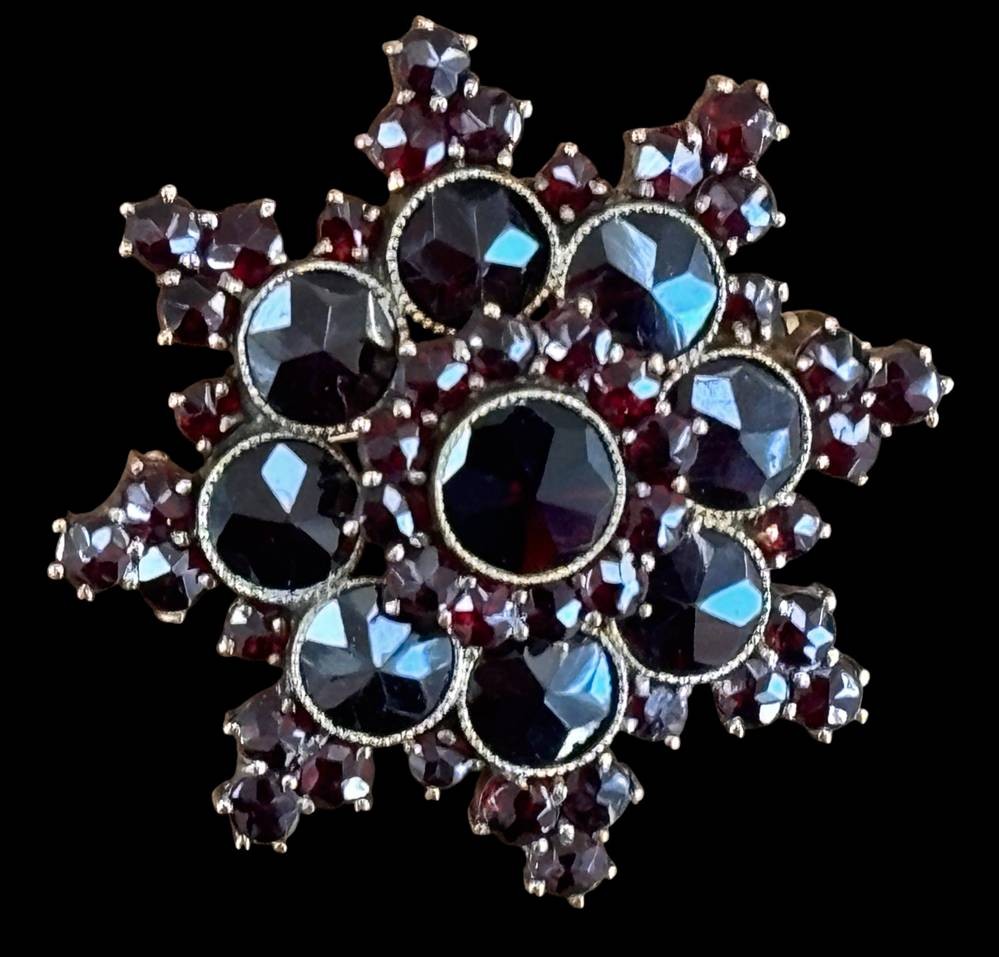 Sternbrosche, Granat mit Normgold-250-, Norm gemarkt, D-3,3 cm, 8,4 gr [1]