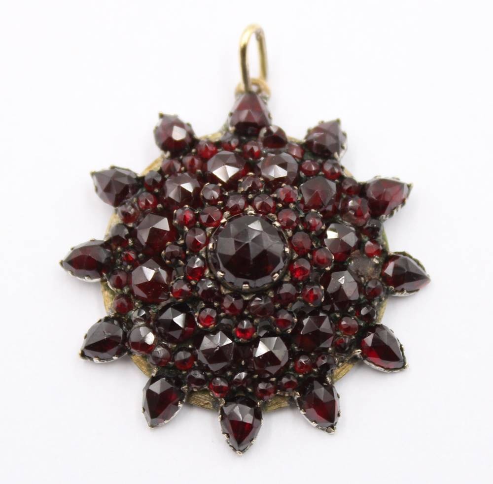 Sternförmiger Anhänger, Granat, Metall?, D- 3,5cm, 7 gr. [1]
