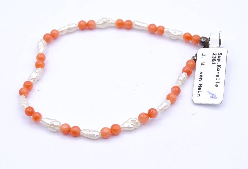 Süßwasserperlen Armband mit Koralle, L. 18cm, 2,5g. [1]