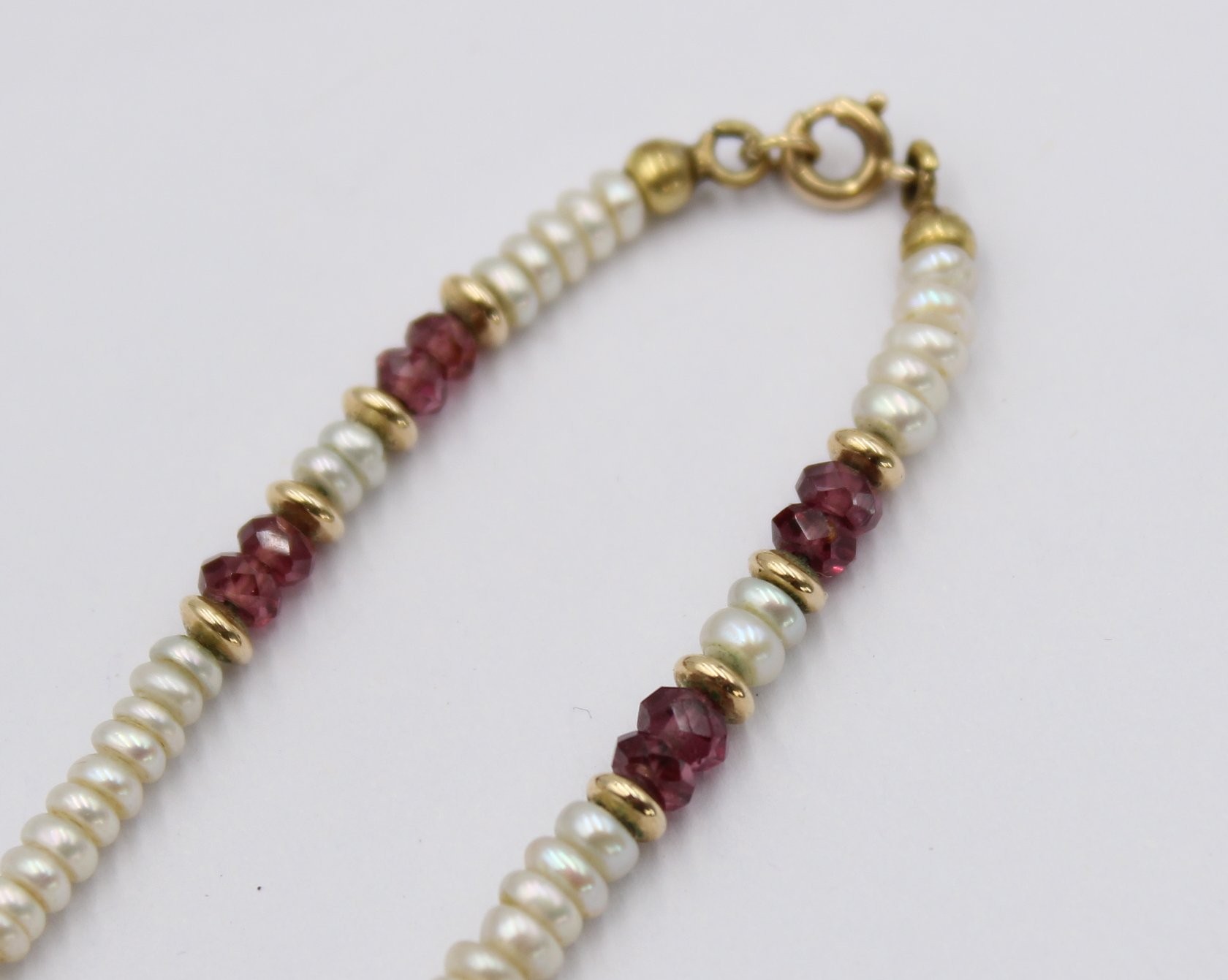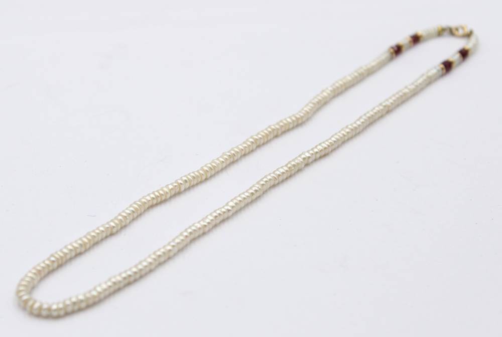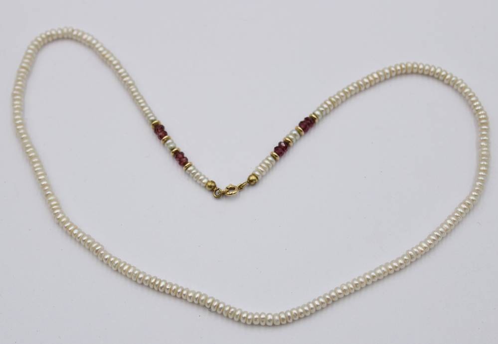 SW-Perlenkette mit wohl Rubinen, 585er GG Schließe, ca. L-44cm [1]