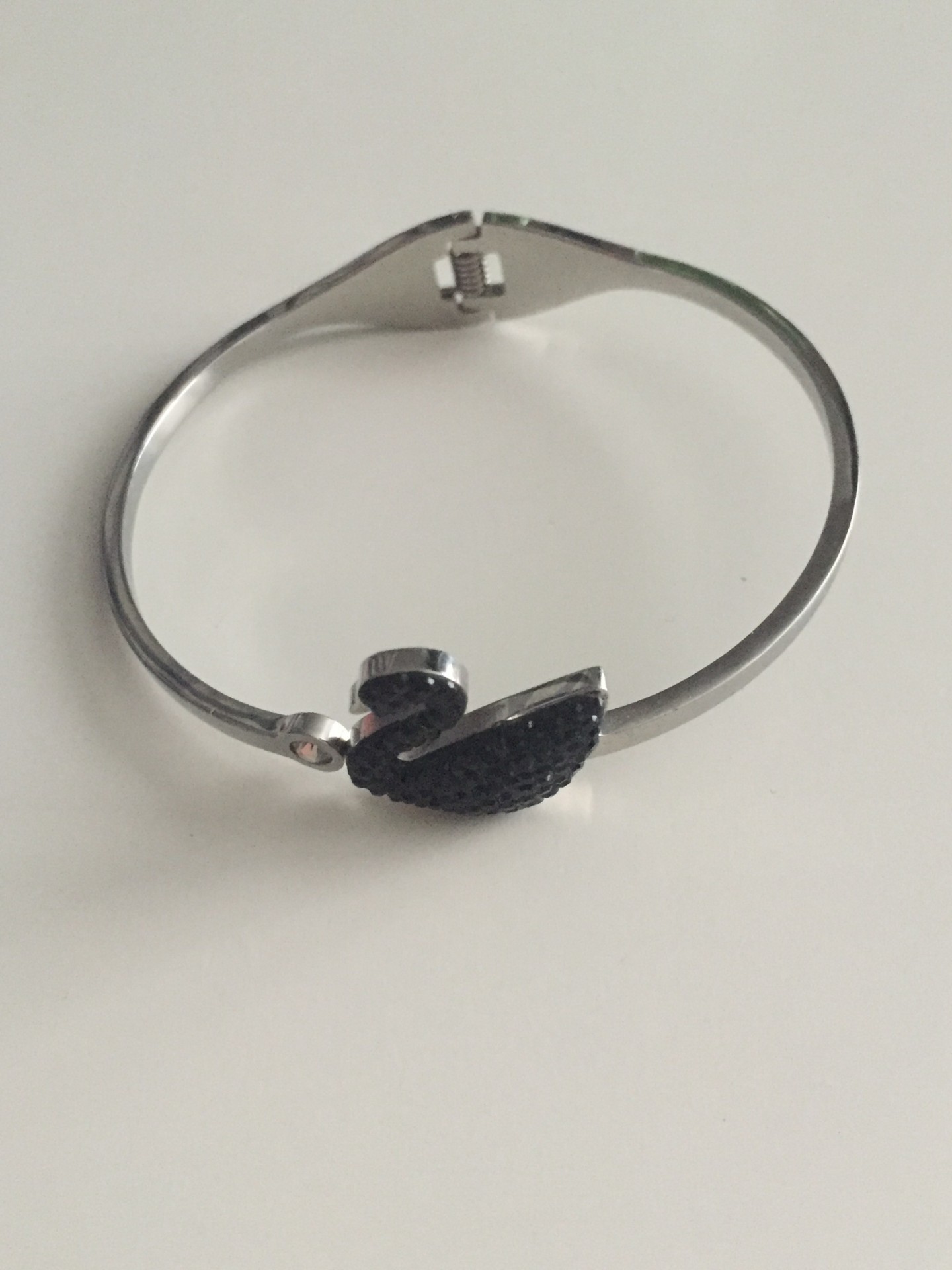 Losnummer - Swarovski Iconic Swan Armreif – Schwan Schwarz – Silberfarben / Rhodium