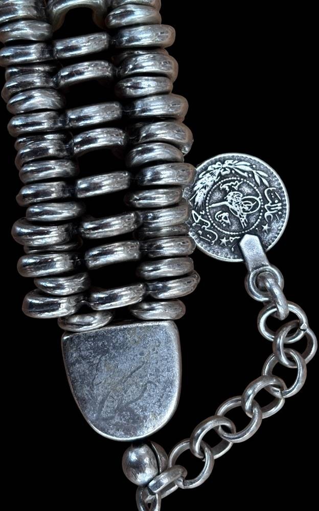 Türkisches Ethno-Armband, wohl versilbert, mit Münze, L-max. 23 cm, 103 gr. [1]