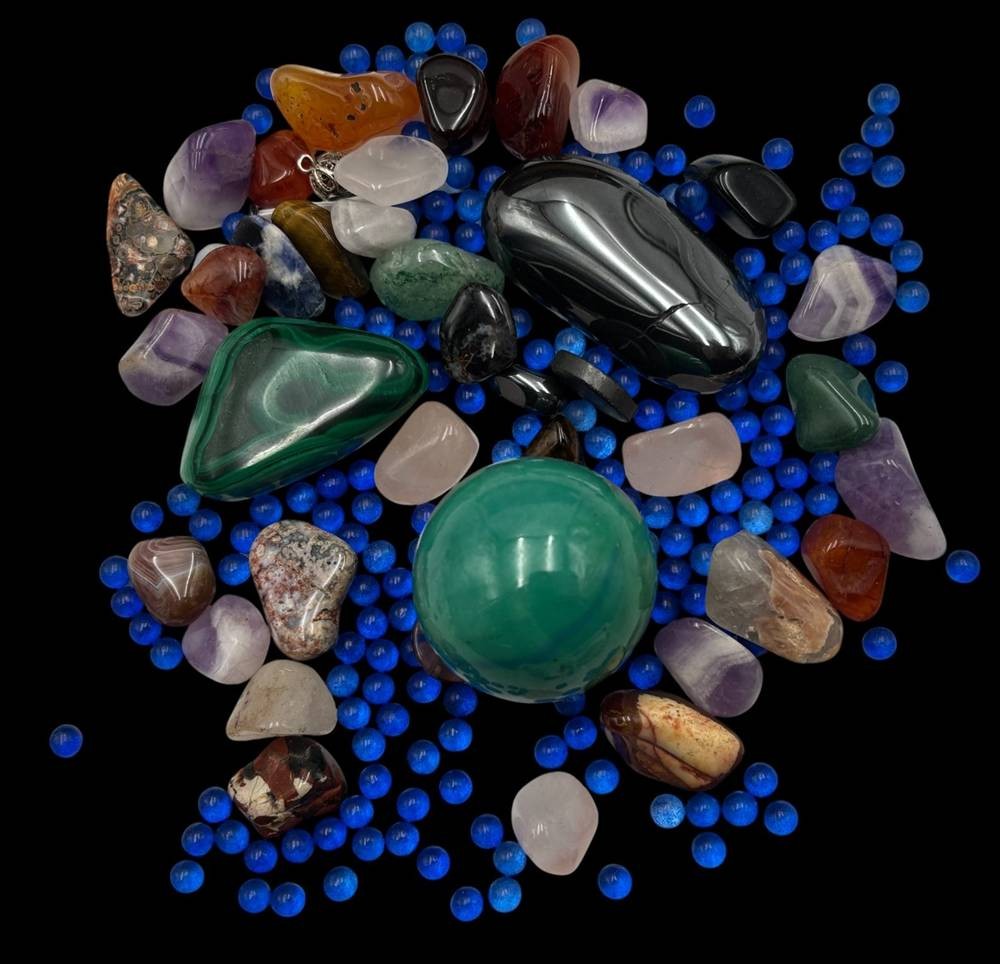 Tüte diverser Halbedelsteinen etc., ca. 250 gr