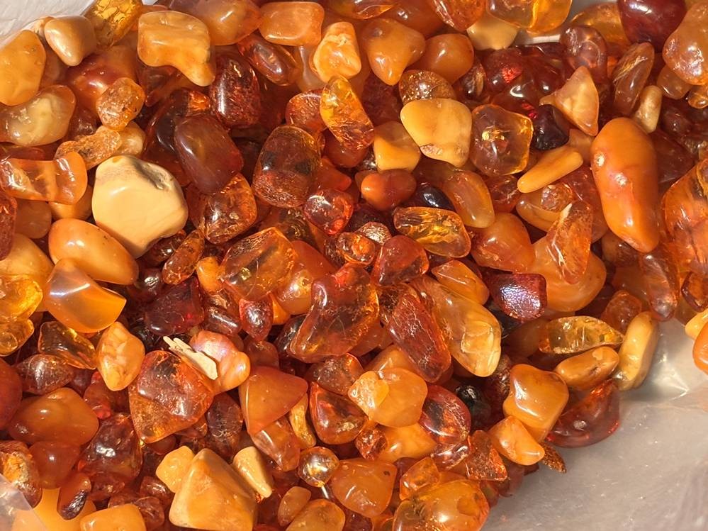 Tüte mit kl. Natur-Bernsteinen, zus. ca. 255 gr.