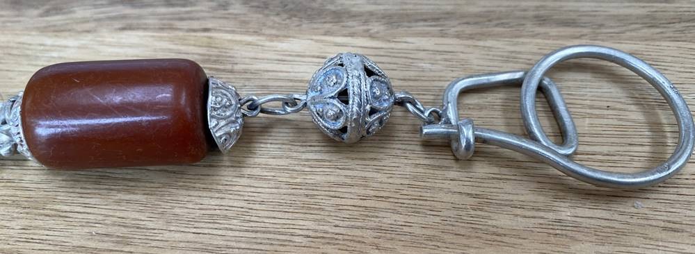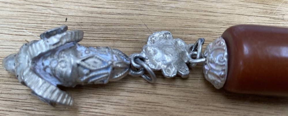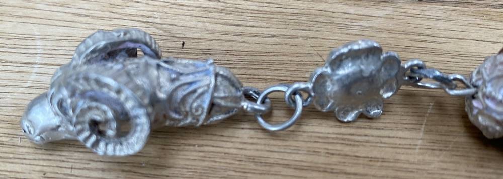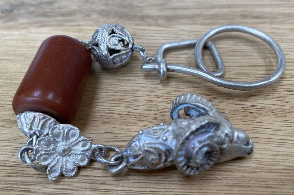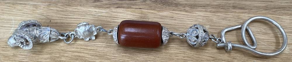 Uhrenkette oder ähnliches, Silber (geprüft) mit Widderkopf, gr. braunen Stein, L-ca. 19 cm, 41 gramm, Handarbeit [1]