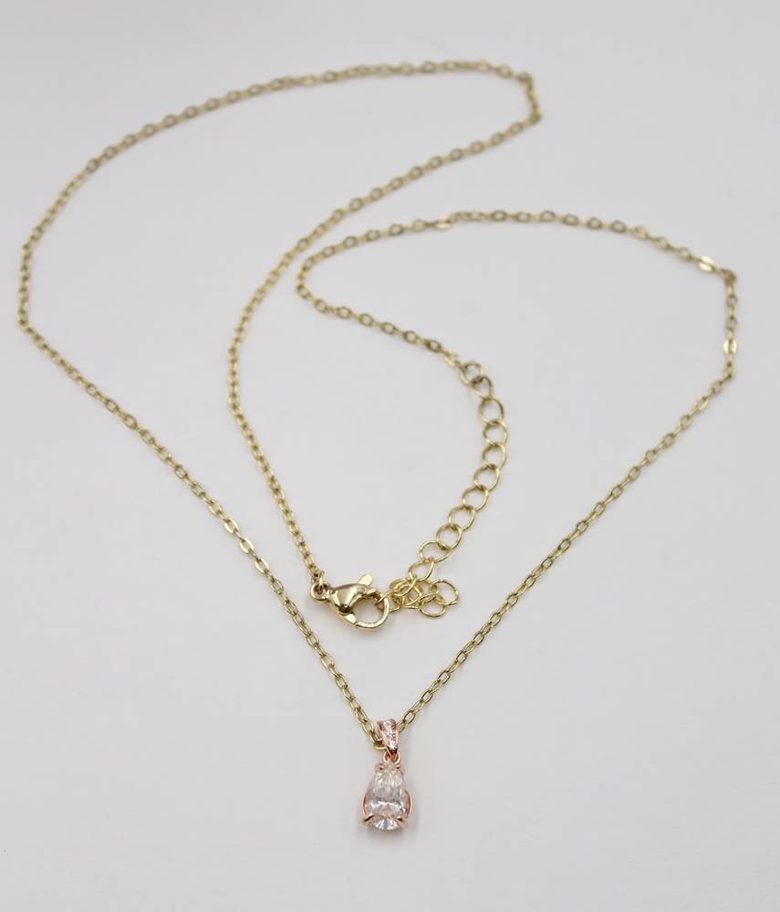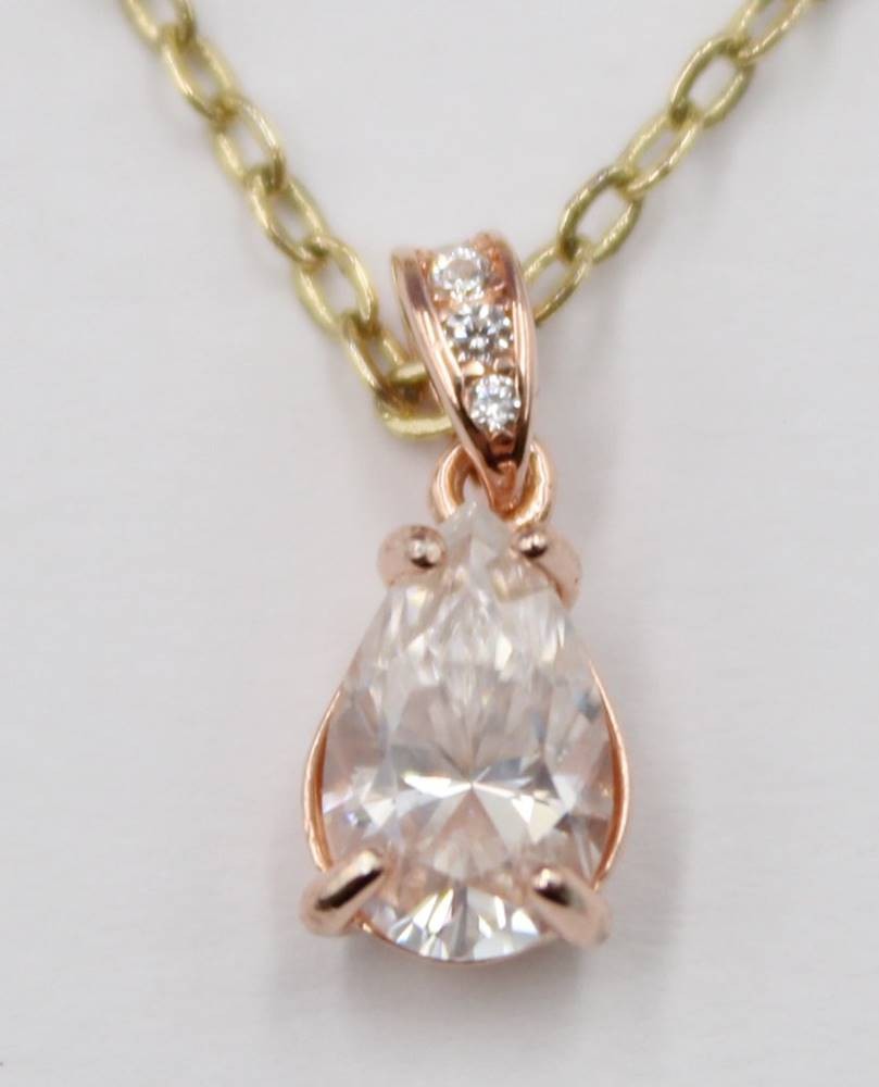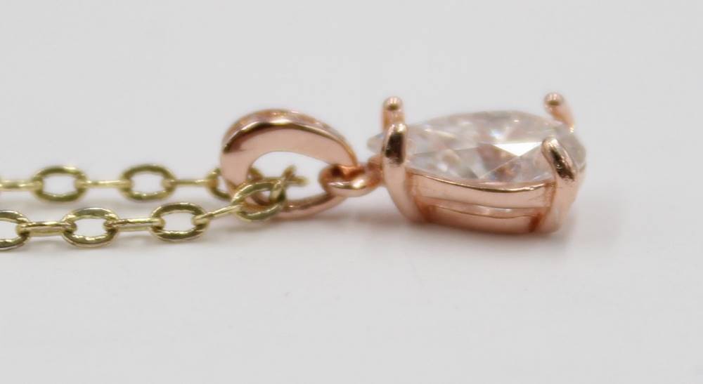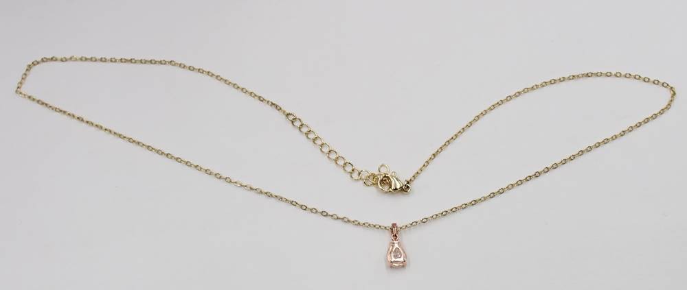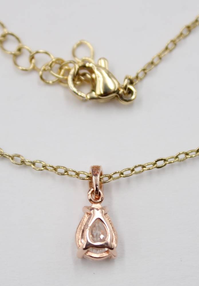 vergoldete Kette mit kl. Silber-Anhänger dieser roséfarben, mit ca. 1ct Moissanite, Anhänger ca. ca. L-1cm, Zertifikat anbei [1]