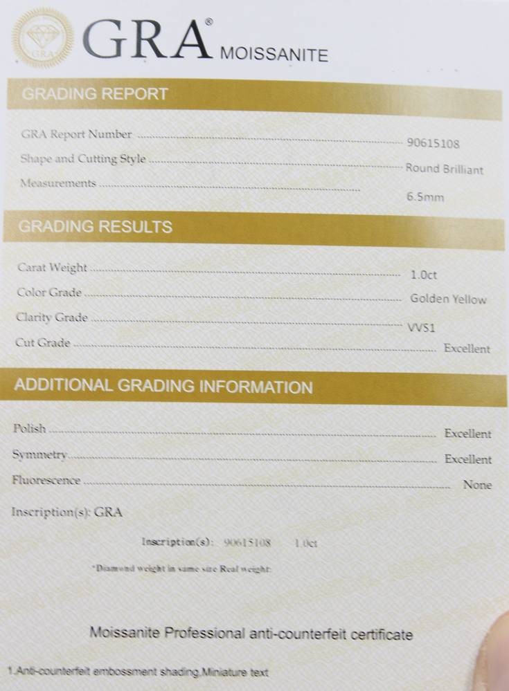 vergoldetes Armband, mit einem 1 ct Moissanite, anbei GRA Zertifikat [1]