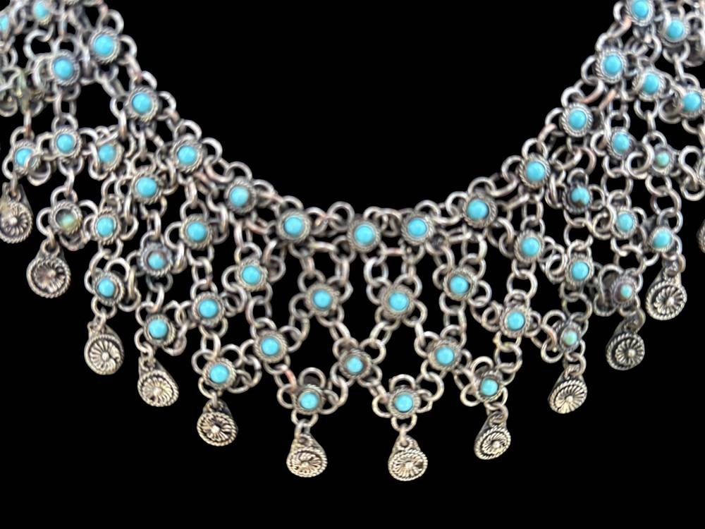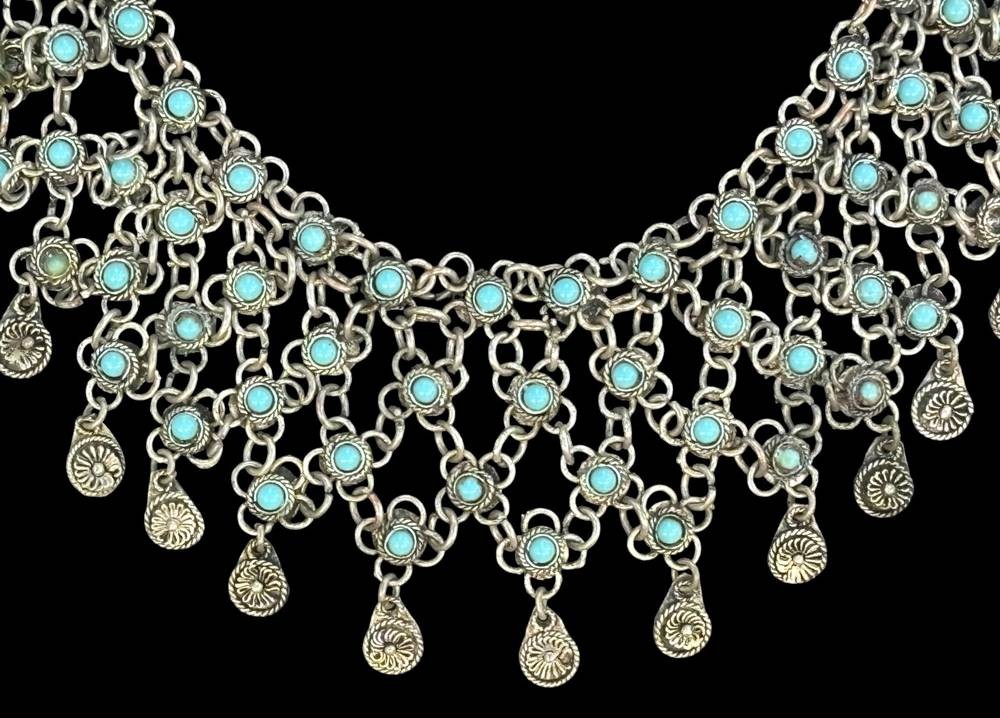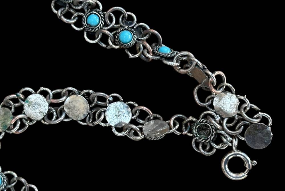 versilbertes Ethno-Collier mit Türkisen, L-45 cm, 43,6 gr [1]