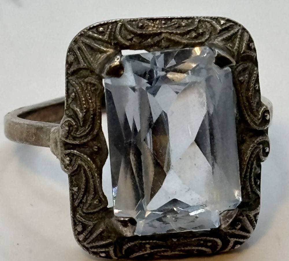 vintage Silberring-835- mit blauen Stein, ungeputzt, RG 56, 5 gr., [1]