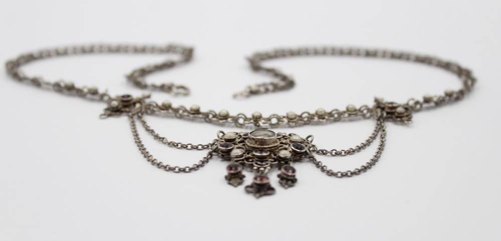 Vintage Trachten-Collier, 800er Silber, Granat und Perlen, 23,5gr., L-46cm [1]