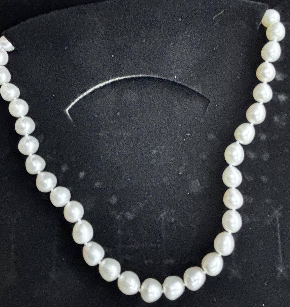 weisse Perlenkette mit Silberschliesse, neu in Kasten, L-ca. 44 cm [1]