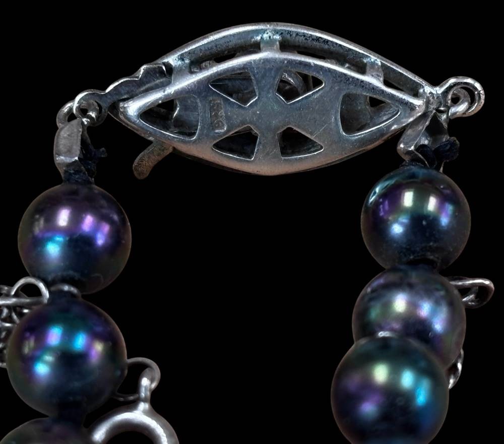 wohl Perlenkette, bunt schimmernd, Silber-925- Schliesse, L-ca. 50 cm, Perlen D-0,4 cm, 28,8 gr [1]