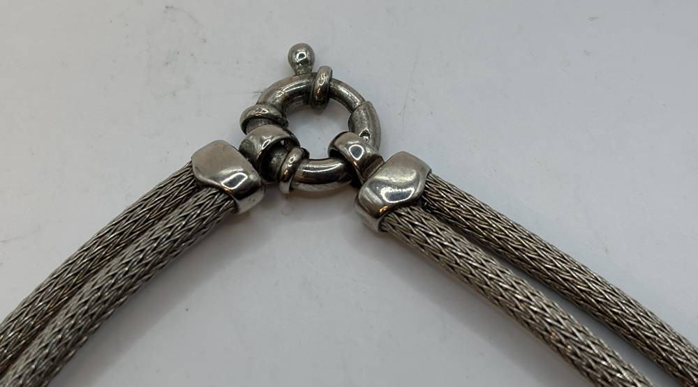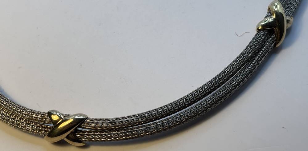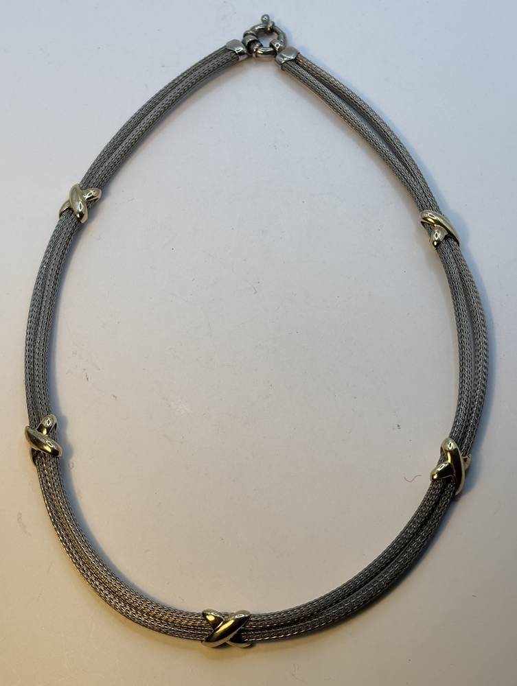 zweireihige Silber-925- Halskette, Kronenmarke, vergoldete Applikationen, L-43 cm, 26,7 gr [1]
